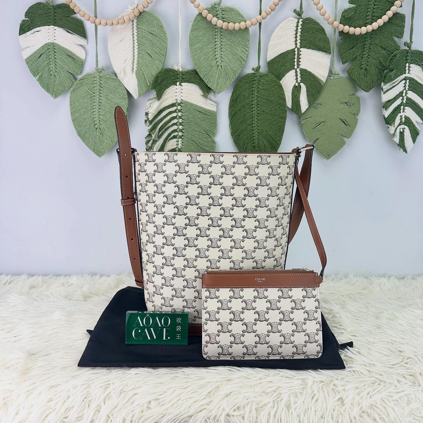 CELINE 🤍PRE OWNED Triomphe 米白色老花水桶包 單肩斜肩包🤎