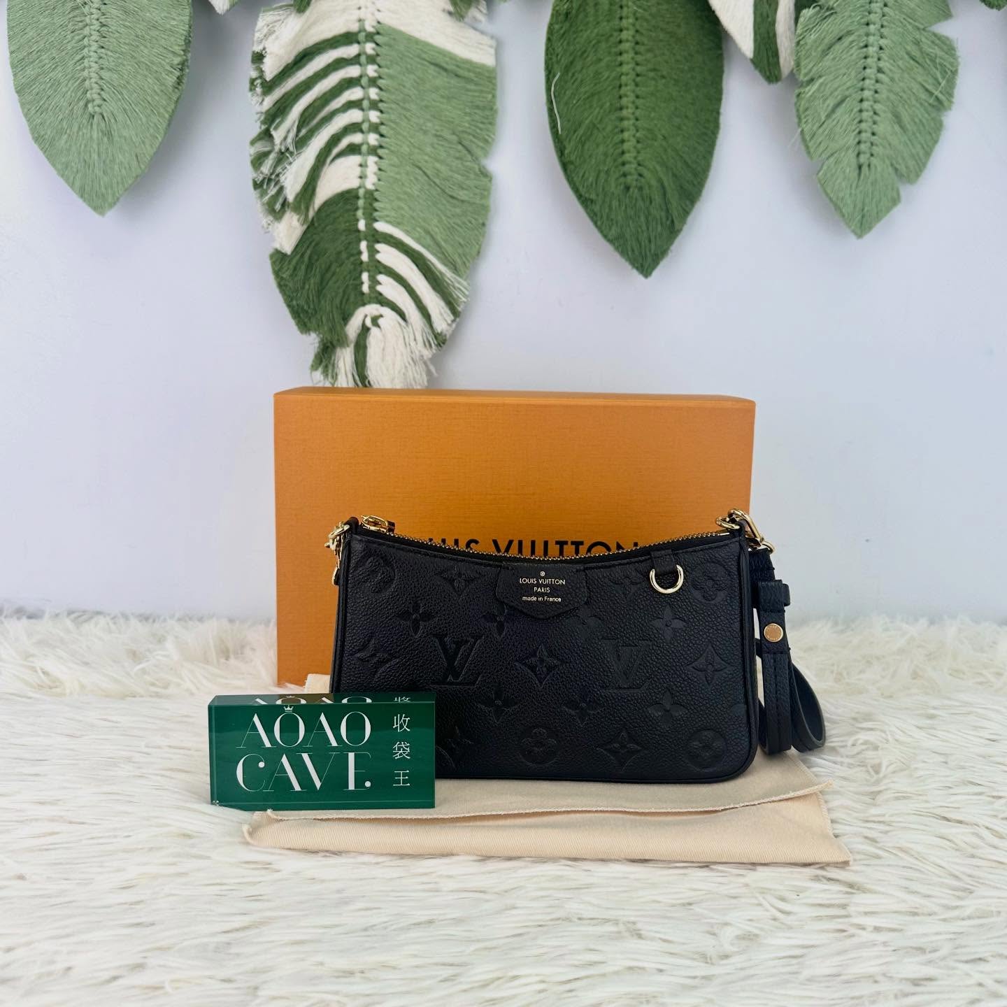 LV 🤍PRE OWNED Easy Pouch On Strap黑色真皮壓紋麻將包 晶片款 全套有單🖤