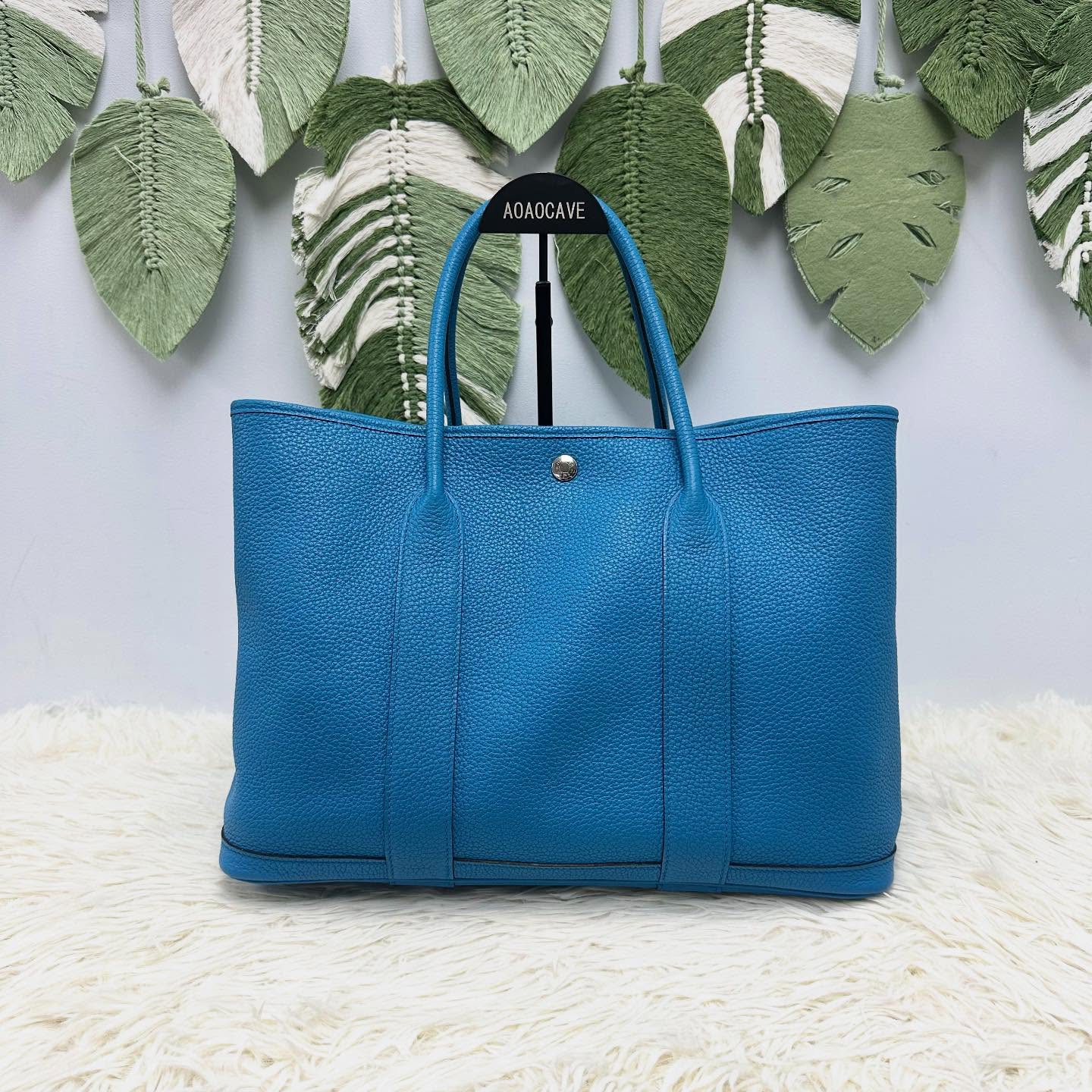 HERMES 🤍PRE OWNED GARDEN PARTY 36 藍色真皮手提包 A Stamp🩶