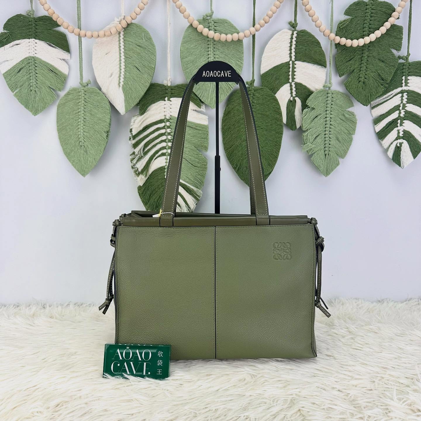 LOEWE 🤍PRE OWNED 綠色真皮 通勤風流蘇包 單肩包💚