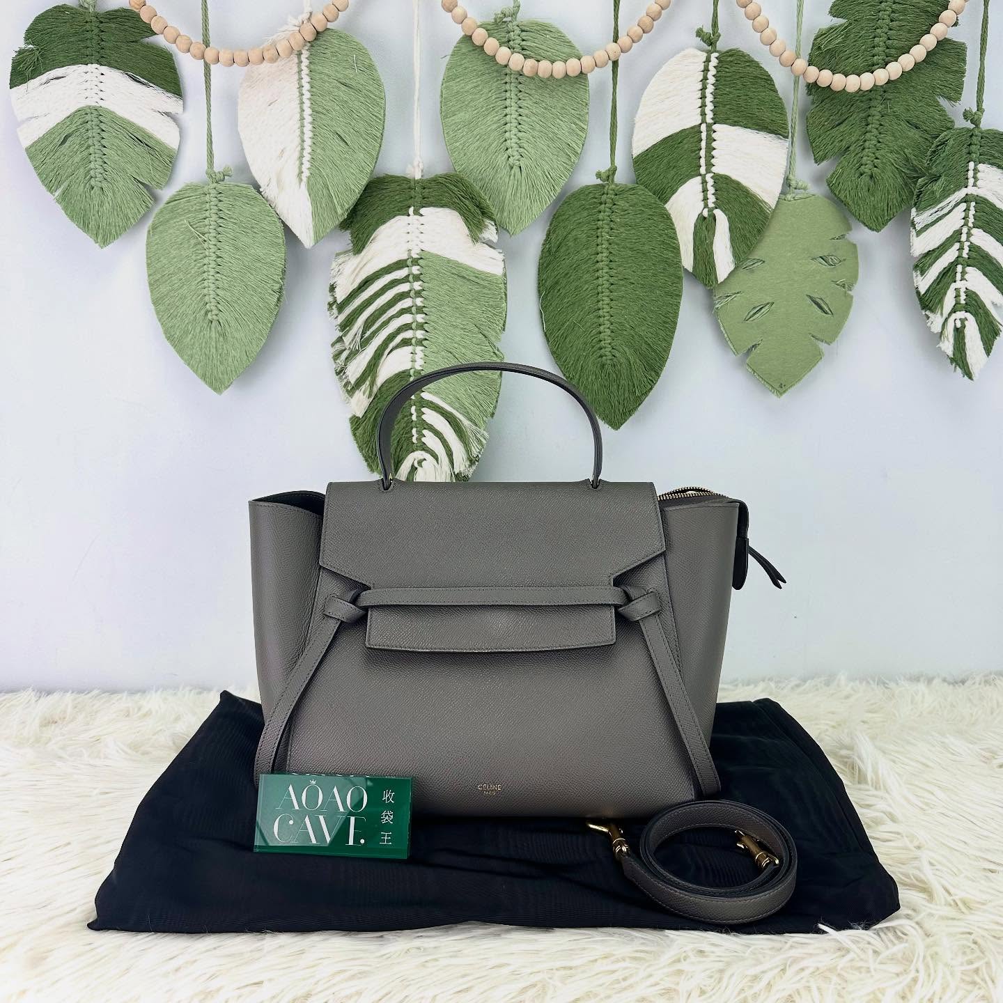 CELINE 🤍PRE OWNED Belt Bag 灰色鯰魚包 28cm Mini Size 手提單肩包🩶