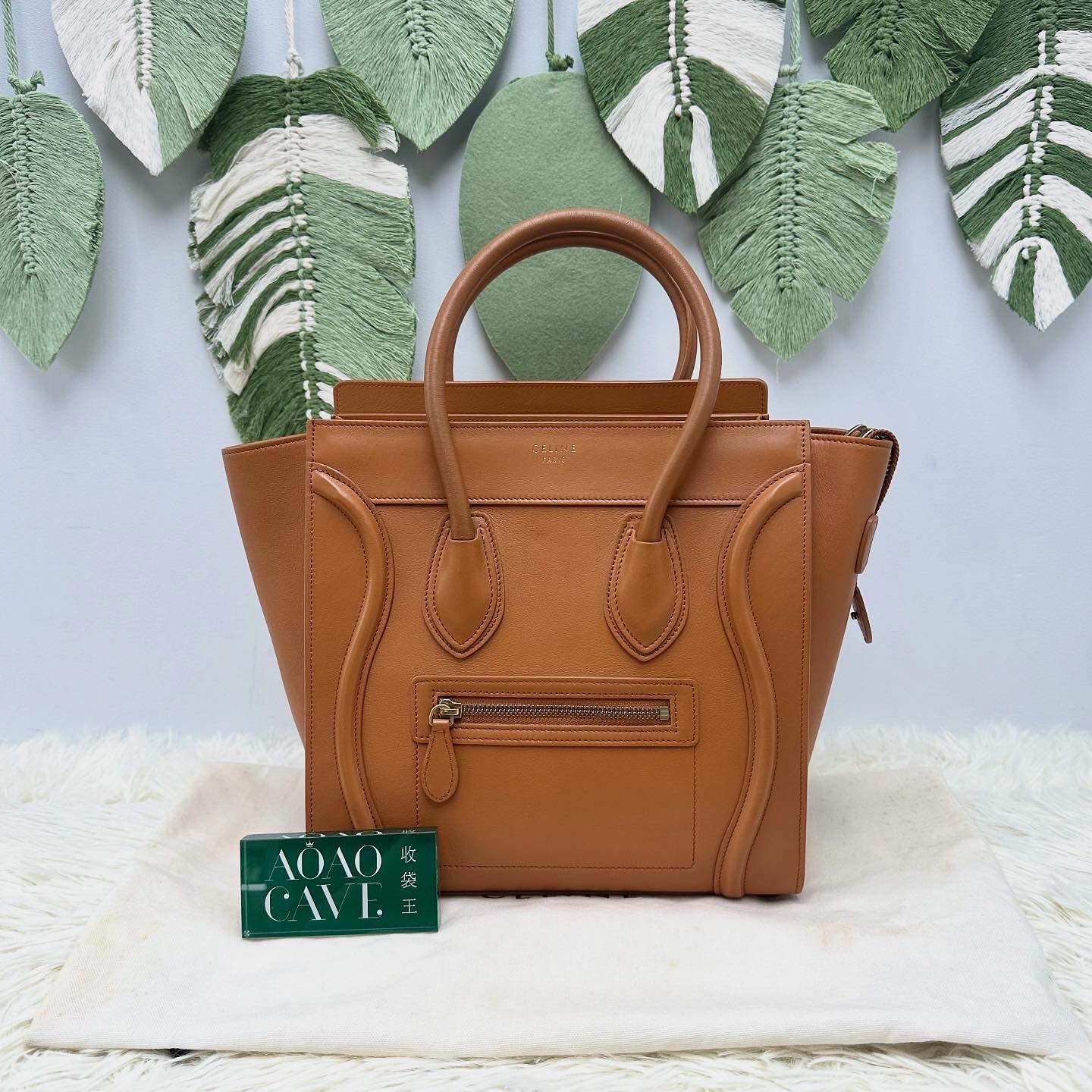 CELINE 🤍PRE OWNED 焦糖色 真皮笑臉包 Micro Size手提包🧡