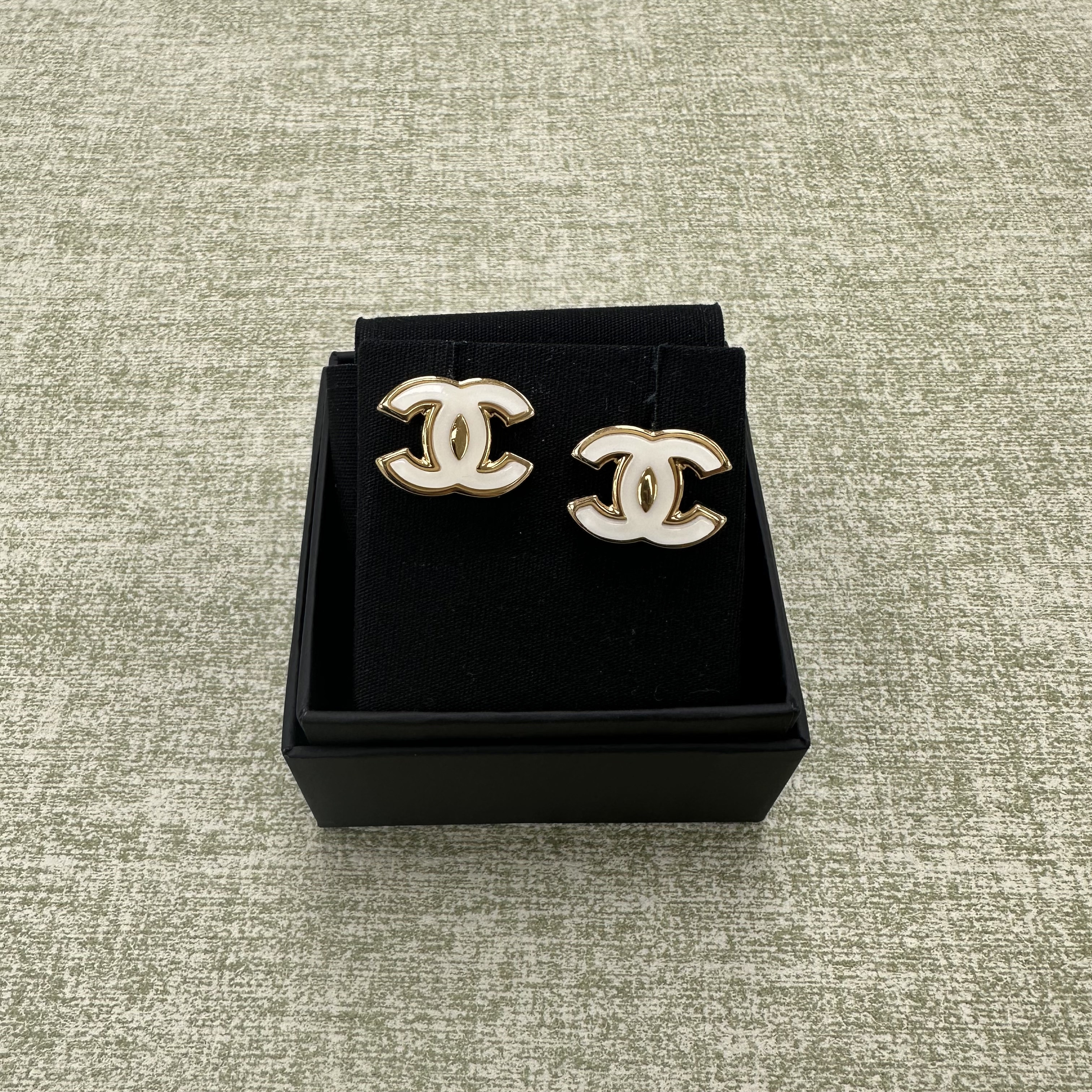 CHANEL🤍PRE OWNED CC 白茶果凍復古金Logo耳環✨