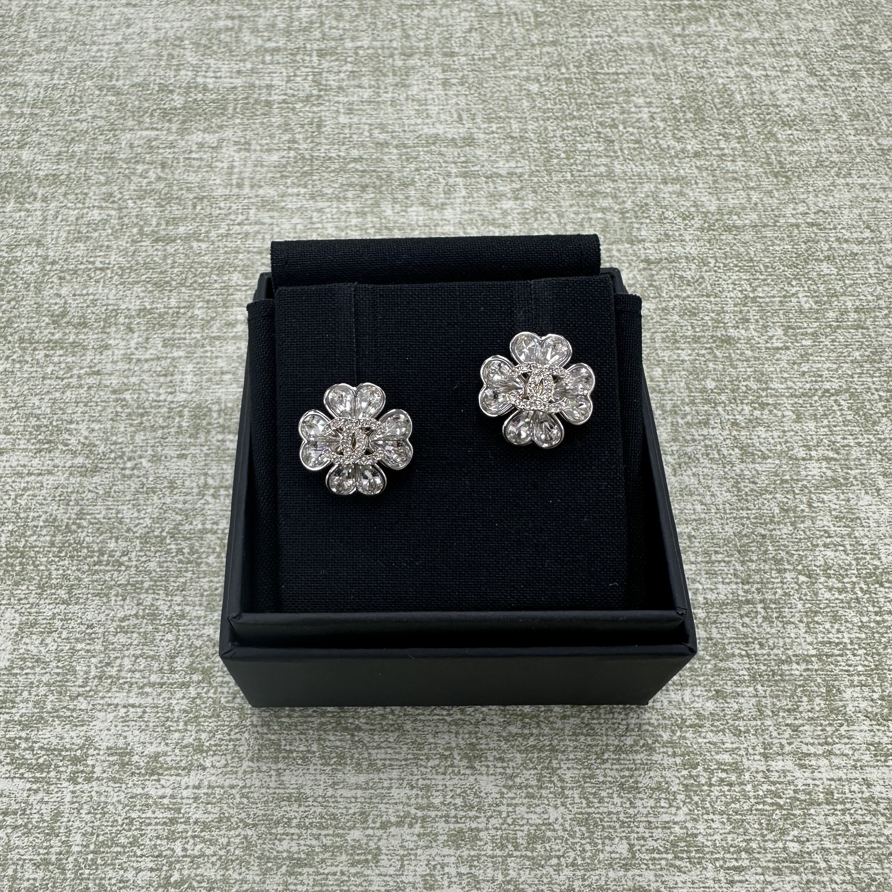 CHANEL🤍PRE OWNED CC 四葉草水鑽耳環 Logo耳環✨