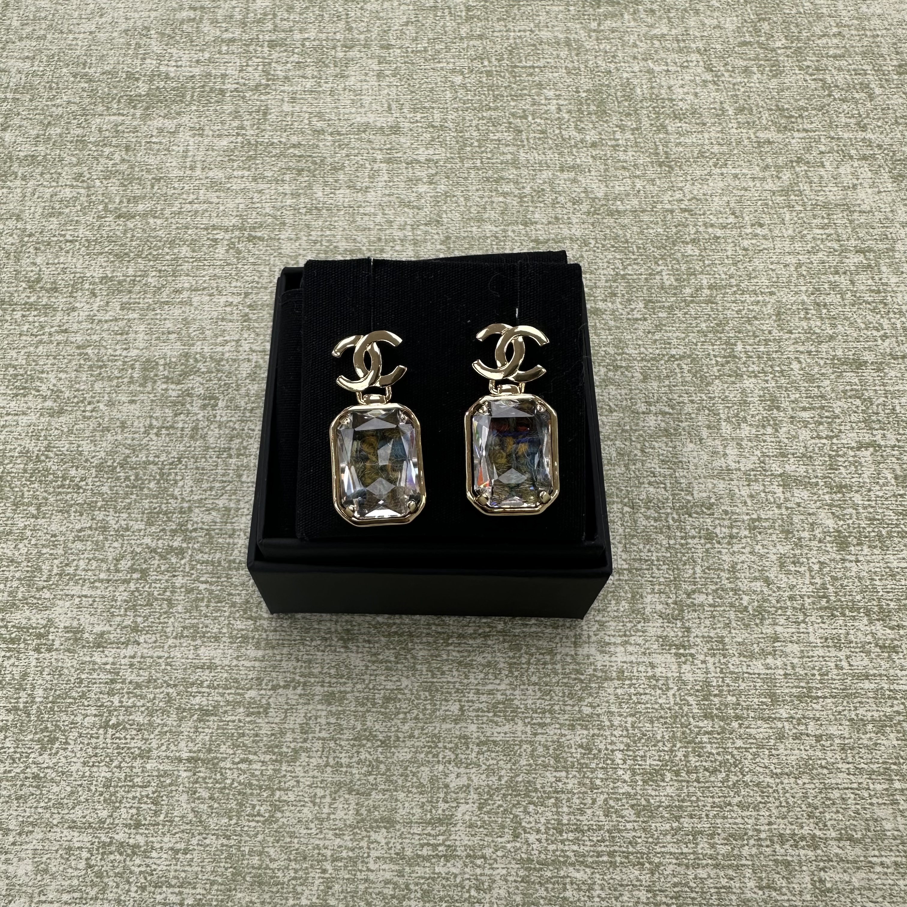 CHANEL 🤍PRE OWNED CC 方形水鑽吊墜Logo耳環✨
