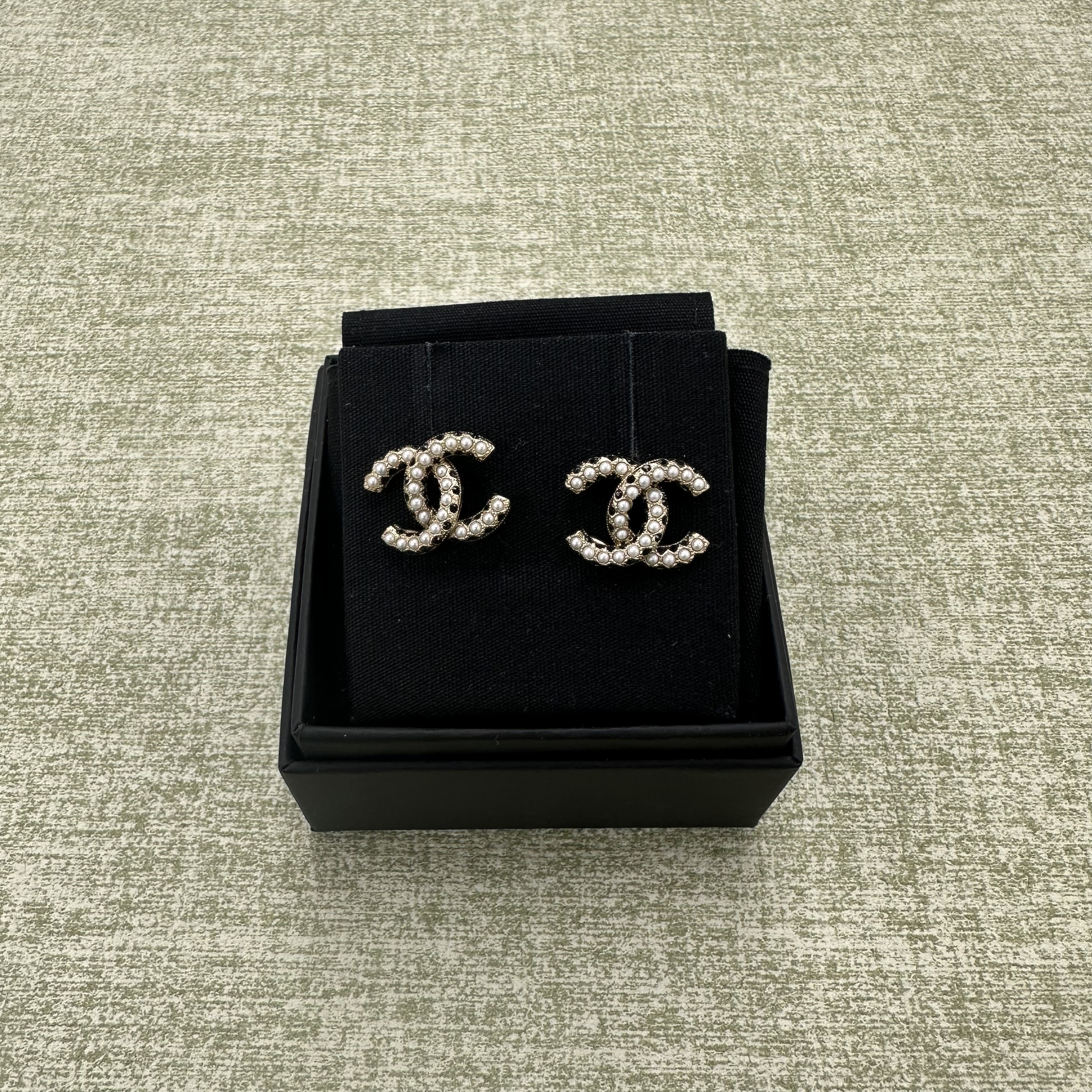 CHANEL 🤍PRE OWNED CC 珍珠黑水鑽耳環 Logo耳環✨