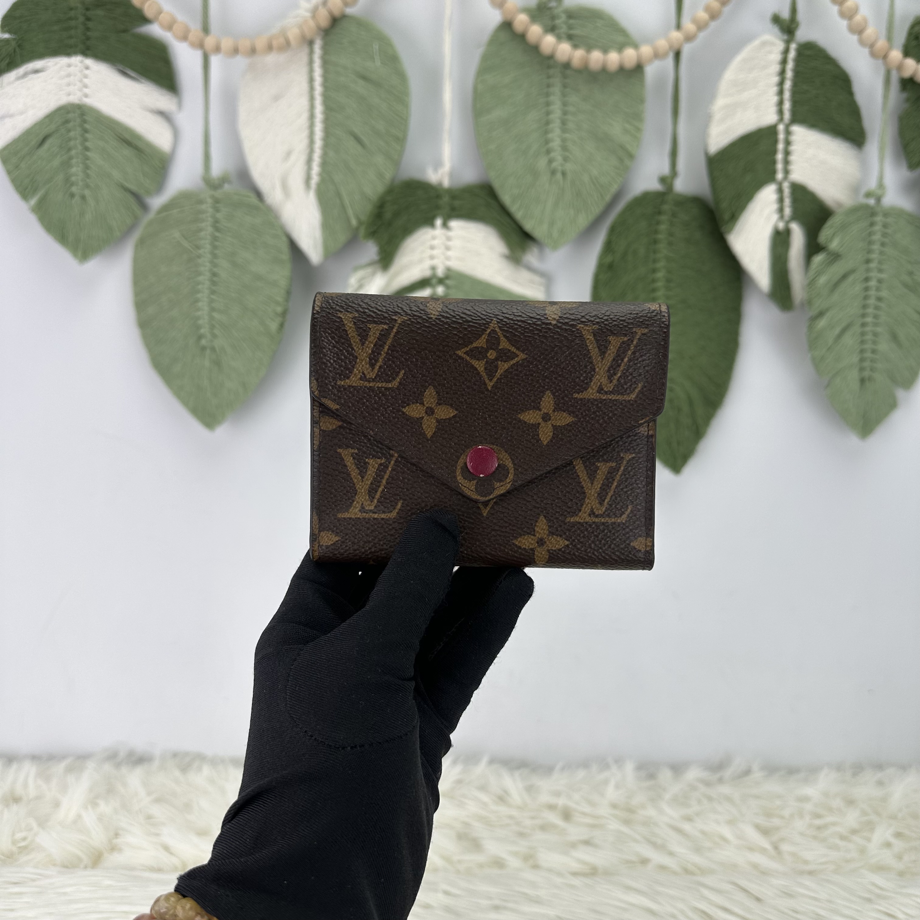 LV 🤍PRE OWNED 經典老花 紅扣 三摺銀包❤️