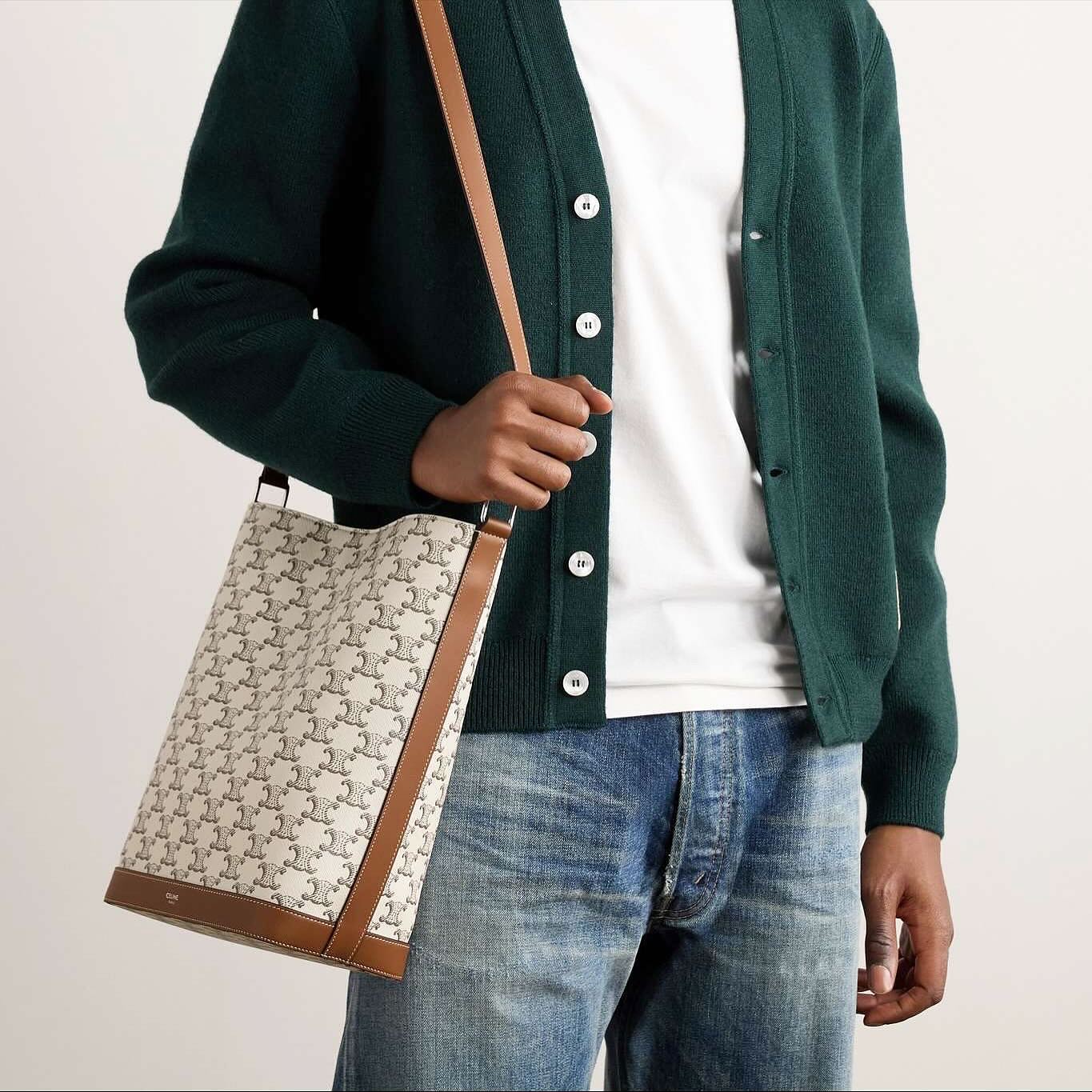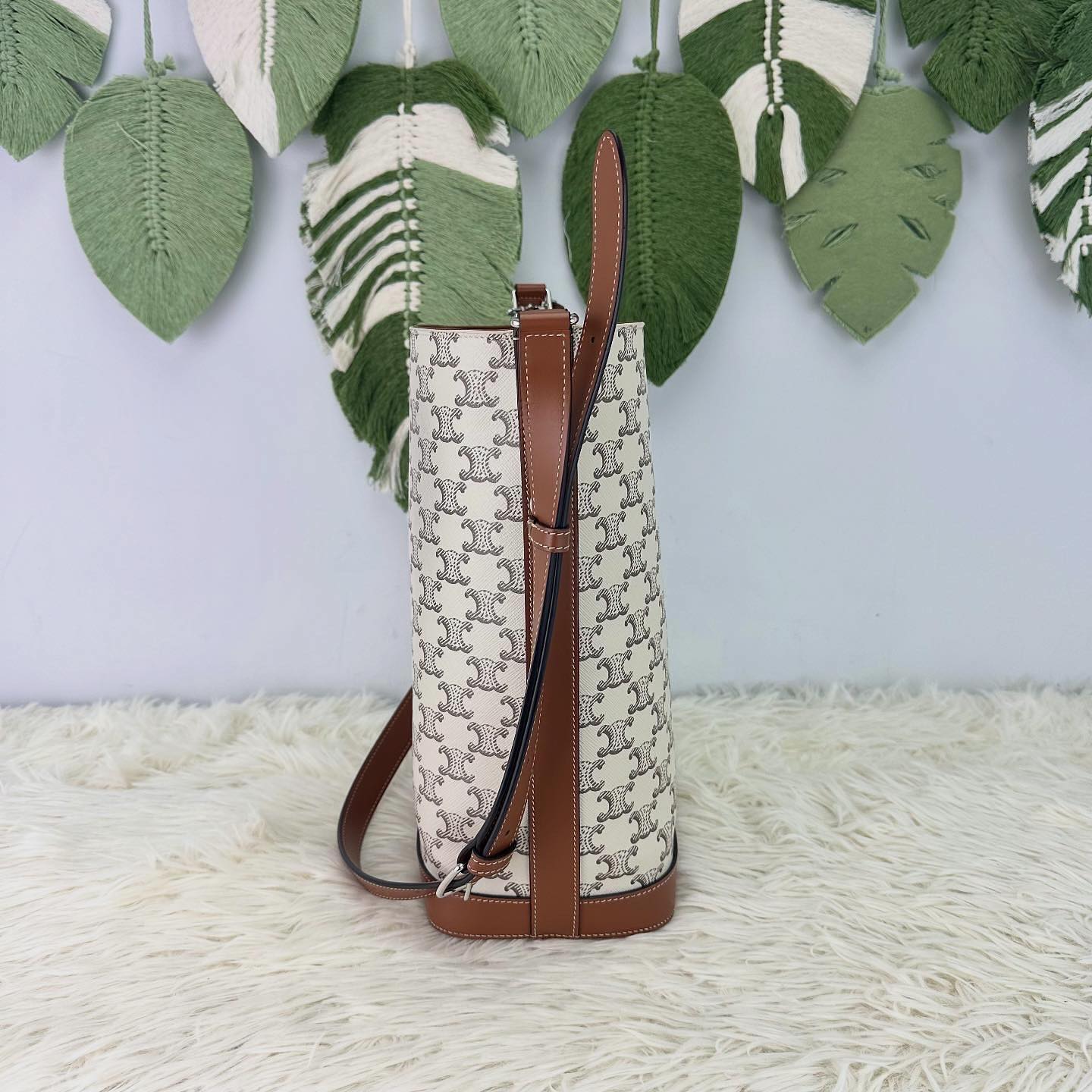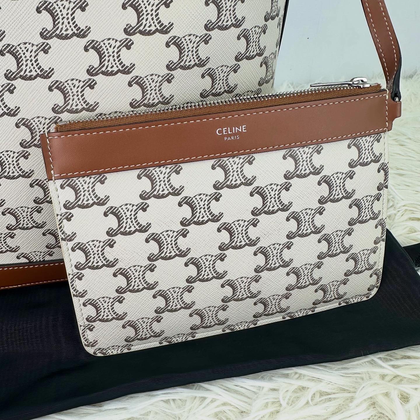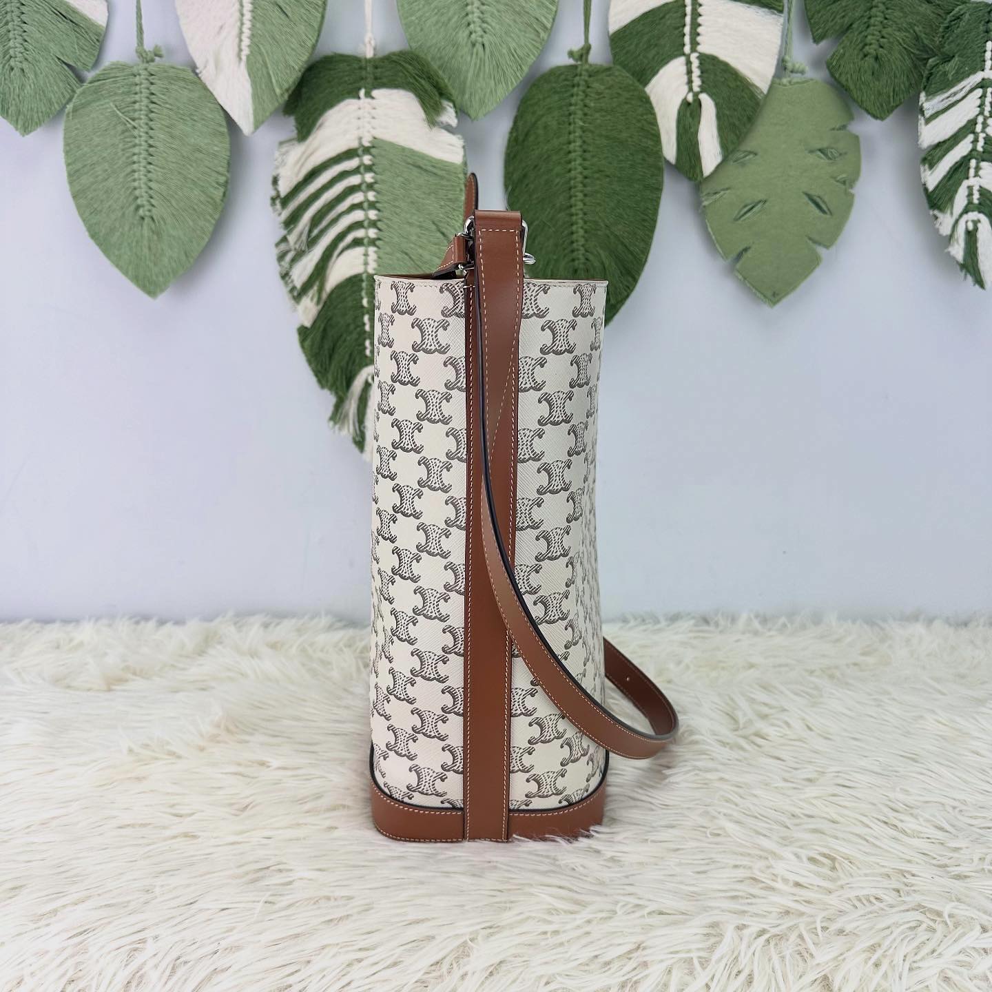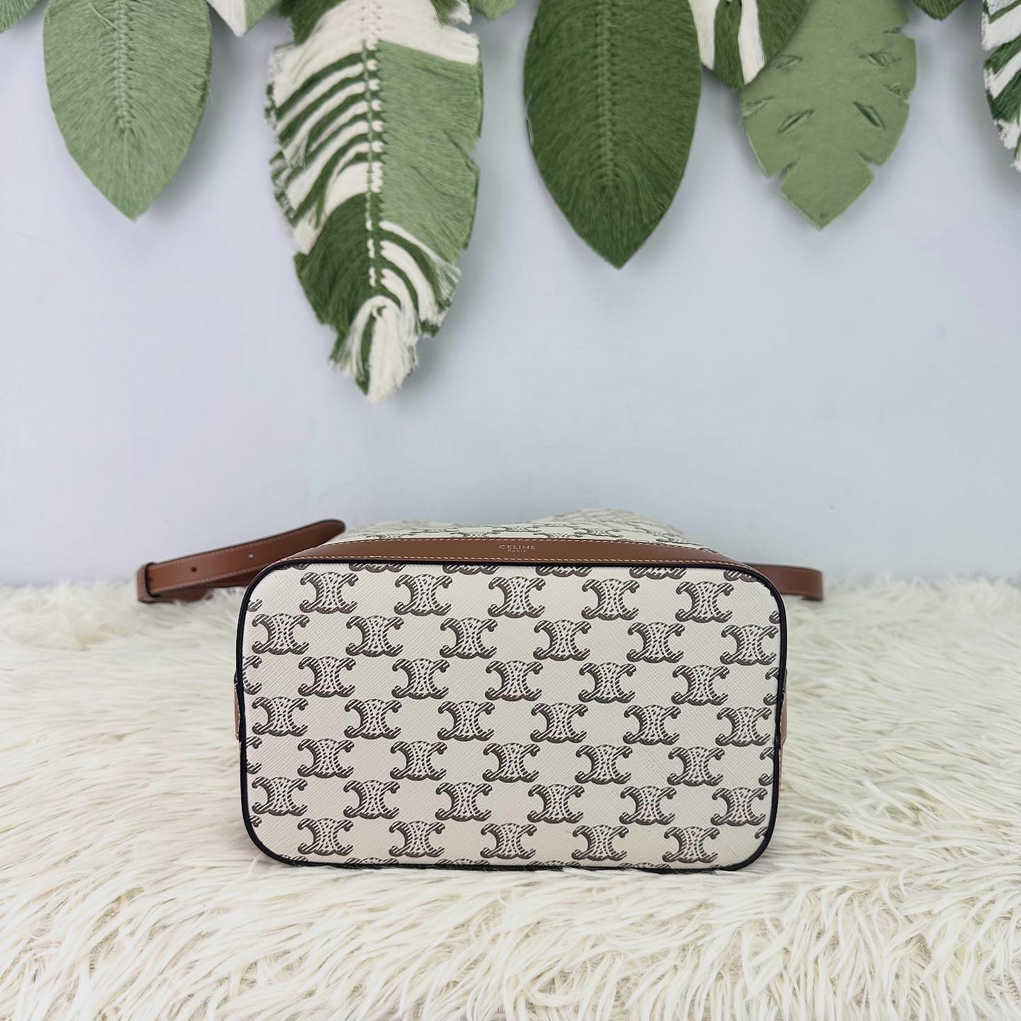 CELINE 🤍PRE OWNED Triomphe 米白色老花水桶包 單肩斜肩包🤎
