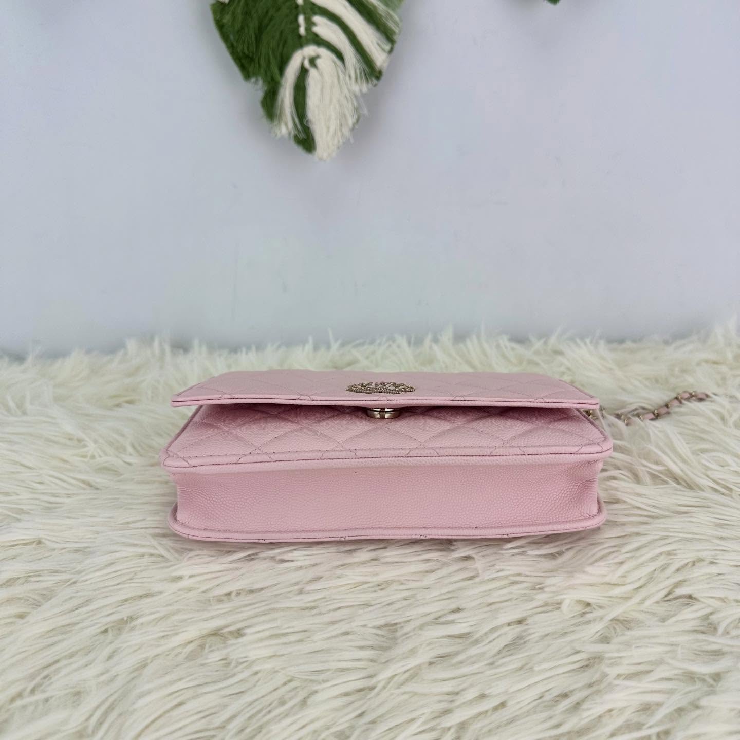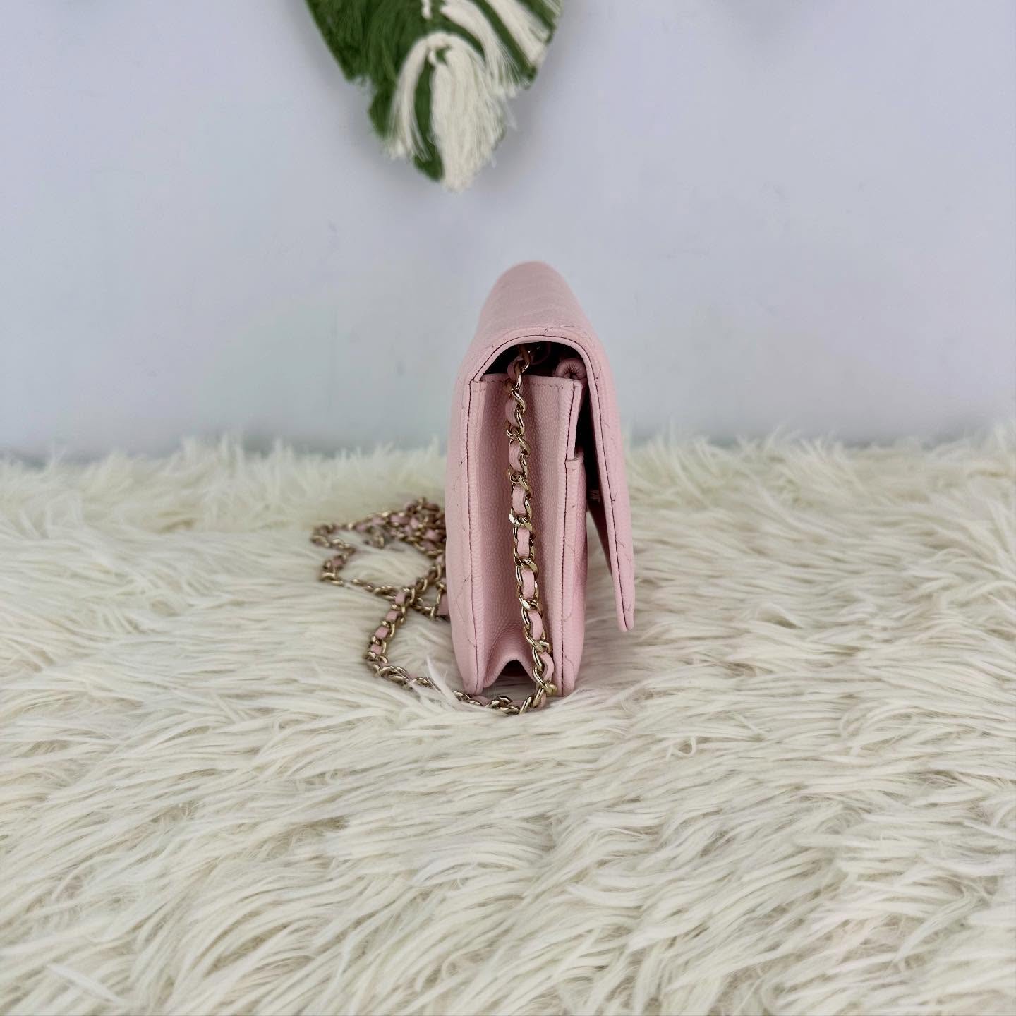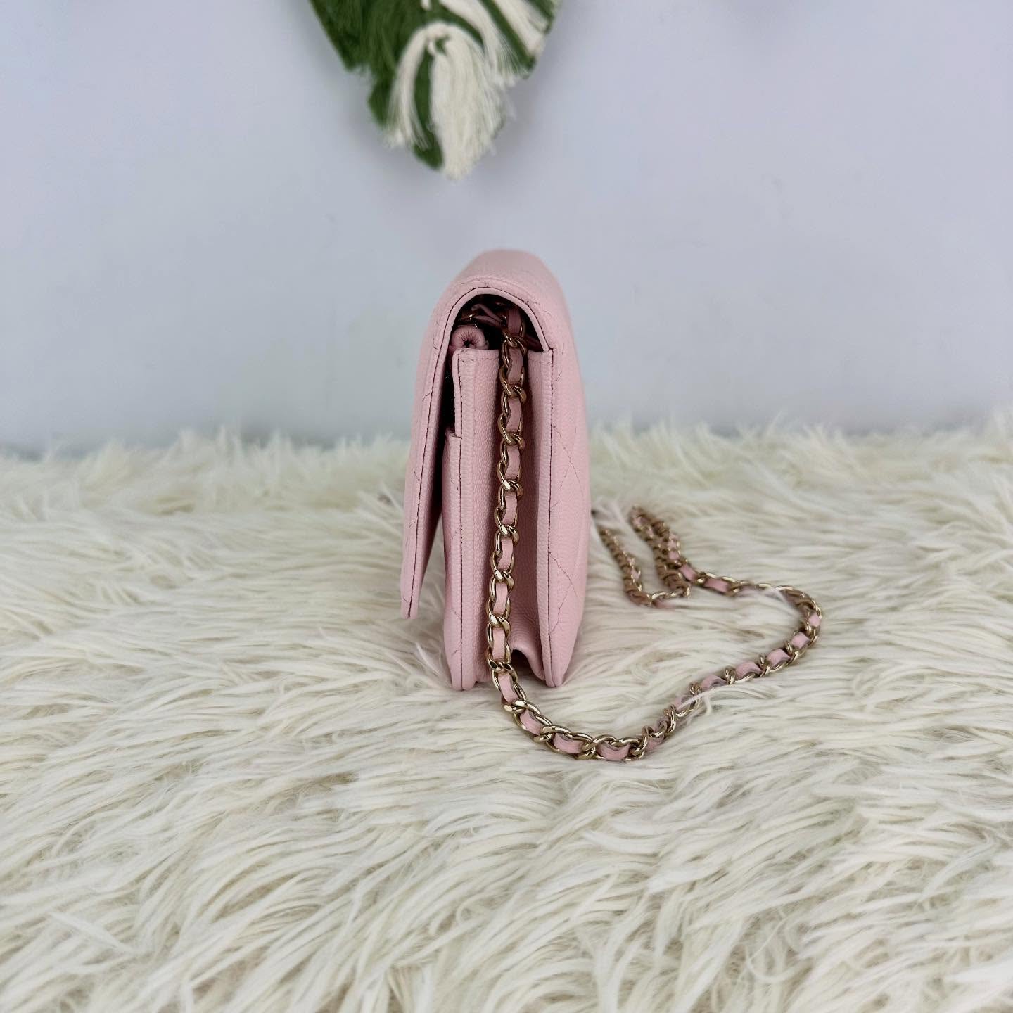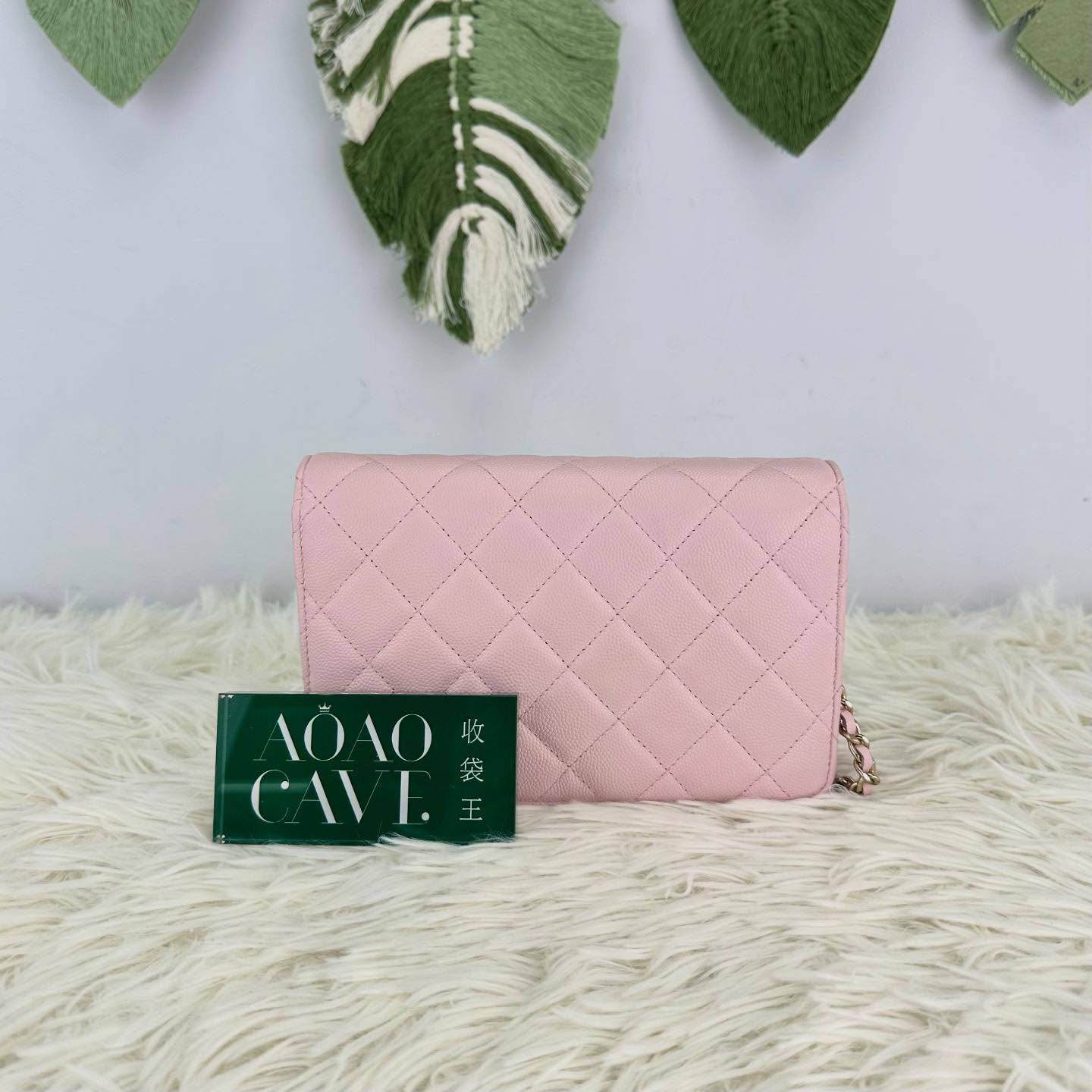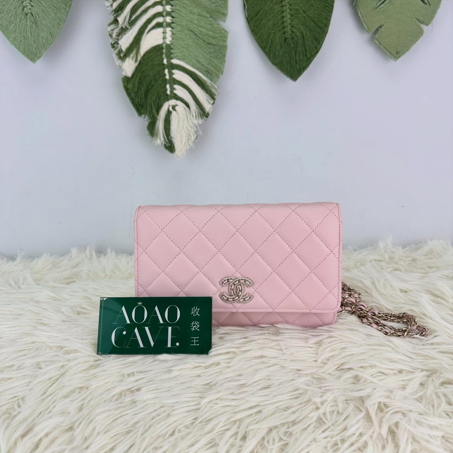 CHANEL🤍PRE OWNED 22s 櫻花粉色水鑽金扣 荔枝皮WOC 晶片款🩷