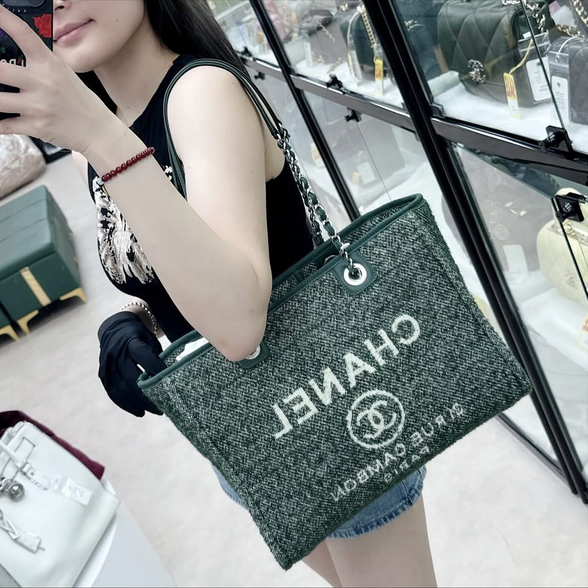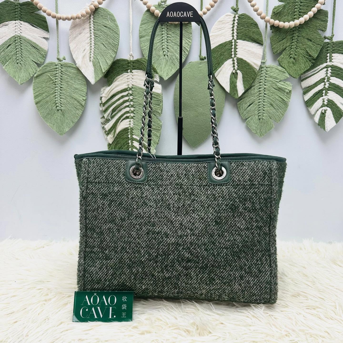 🤍PRE OWNED Deauville 綠色編織沙灘包 Tote bag 晶片款 全套有盒💚 35*14*26cm #AOAOCAVECHANEL🫶🏻 配件 - 塵袋、盒🫶🏻 💰優惠價 - $19980 98%New #收袋王 喜歡的話快點pm/whatsapp 我們💓 銷售熱線51111 321(whatsapp) 我們服務包括有:手袋飾物回收、手袋置換(一換一、一換多也可以) 、專業手袋鑑證、專業手袋護理 購買方法 🏢親臨門市 荃灣南豐中心15樓1521室(荃灣地鐵站a出口1分鐘到)敬請預約 ❤️只賣正品正貨,任驗💓🫰🏻 ❤️🔥本店為香港註冊公司絕對真貨,信心保證👍🏻 🫰🏻本店設有鑑證服務,有駐場鑑證師 ✨歡迎追蹤我哋各個平台緊貼最新優惠x貨品🔥😍 👇🏻👇🏻👇🏻👇🏻👇🏻👇🏻👇🏻👇🏻 ⭐️Instagram: aoaocave 🌈Facebook: aoaocave收袋王 🔥Carousell: acluxuryhk 👆🏻👆🏻👆🏻👆🏻👆🏻👆🏻👆🏻👆🏻 ___________________________ Disclaimer🫰🏻All trademarks and copyrights are reserved to the original brand holders. @AOAOCAVE sells only authentic goods and is not affiliated with any of the brands mentioned. @AOAOCAVE 跟任何品牌無關,而且沒有持有任何品牌資版權,亦沒有與任何品牌合作。所有商標及版權歸屬於品牌坊所有,帖子只作分享用途。 #aoaocave #acluxuryhk #手袋回收 #二手名牌手袋 #名牌買賣 #女名牌#名牌手袋#名牌代購#中古名牌#二手名牌#手袋