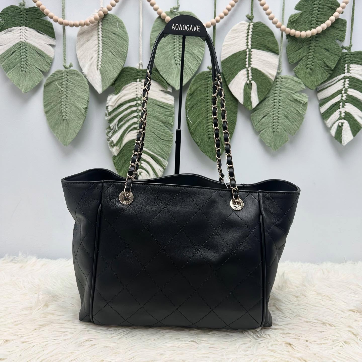 🤍PRE OWNED 黑金真皮菱格子母沙灘包 Tote Bag 全套有單🖤 33*13*25cm #AOAOCAVECHANEL🫶🏻 配件 - 卡(31)、塵袋、盒、香港專門店單🫶🏻 💰價錢 - $21980 98%New #收袋王 喜歡的話快點pm/whatsapp 我們💓 銷售熱線51111 321(whatsapp) 我們服務包括有:手袋飾物回收、手袋置換(一換一、一換多也可以) 、專業手袋鑑證、專業手袋護理 購買方法 🏢親臨門市 荃灣南豐中心15樓1521室(荃灣地鐵站a出口1分鐘到)敬請預約 ❤️只賣正品正貨,任驗💓🫰🏻 ❤️🔥本店為香港註冊公司絕對真貨,信心保證👍🏻 🫰🏻本店設有鑑證服務,有駐場鑑證師 ✨歡迎追蹤我哋各個平台緊貼最新優惠x貨品🔥😍 👇🏻👇🏻👇🏻👇🏻👇🏻👇🏻👇🏻👇🏻 ⭐️Instagram: aoaocave 🌈Facebook: aoaocave收袋王 🔥Carousell: acluxuryhk 👆🏻👆🏻👆🏻👆🏻👆🏻👆🏻👆🏻👆🏻 ___________________________ Disclaimer🫰🏻All trademarks and copyrights are reserved to the original brand holders. @AOAOCAVE sells only authentic goods and is not affiliated with any of the brands mentioned. @AOAOCAVE 跟任何品牌無關,而且沒有持有任何品牌資版權,亦沒有與任何品牌合作。所有商標及版權歸屬於品牌坊所有,帖子只作分享用途。 #aoaocave #acluxuryhk #手袋回收 #二手名牌手袋 #名牌買賣 #女名牌#名牌手袋#名牌代購#中古名牌#二手名牌#手袋