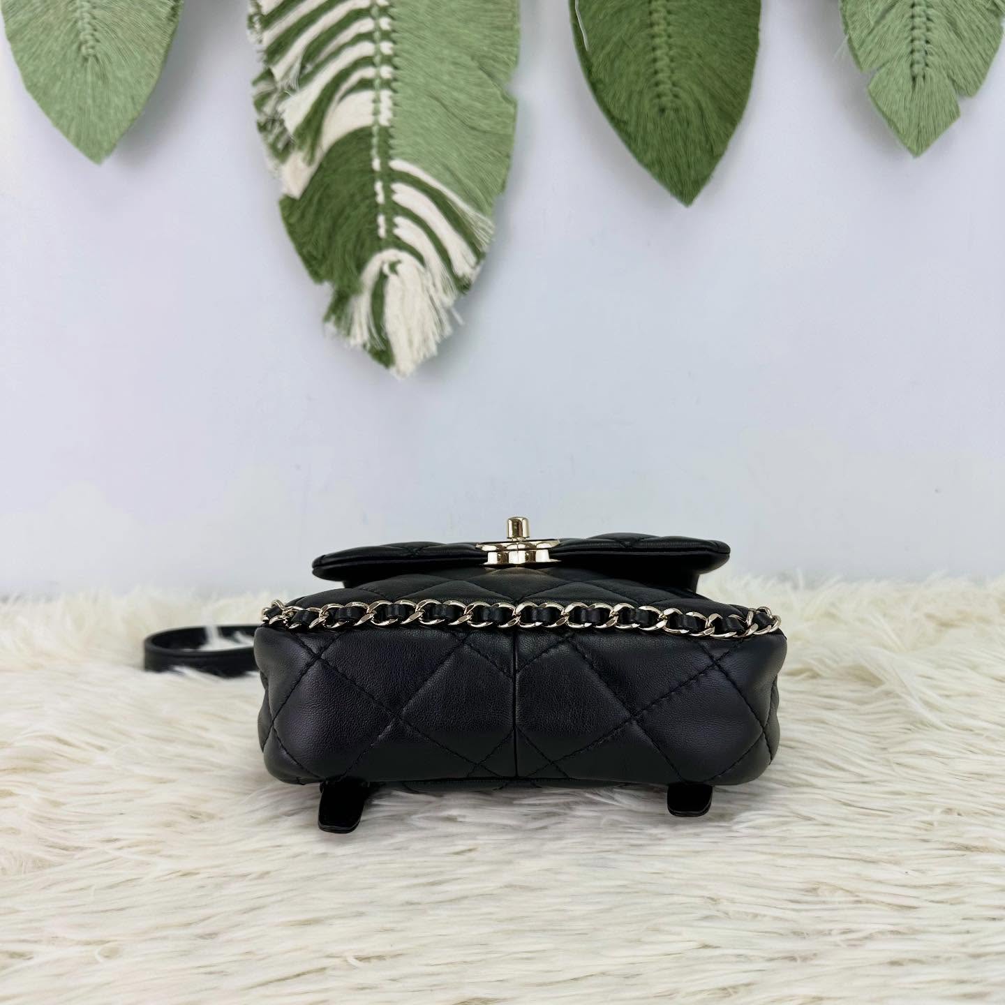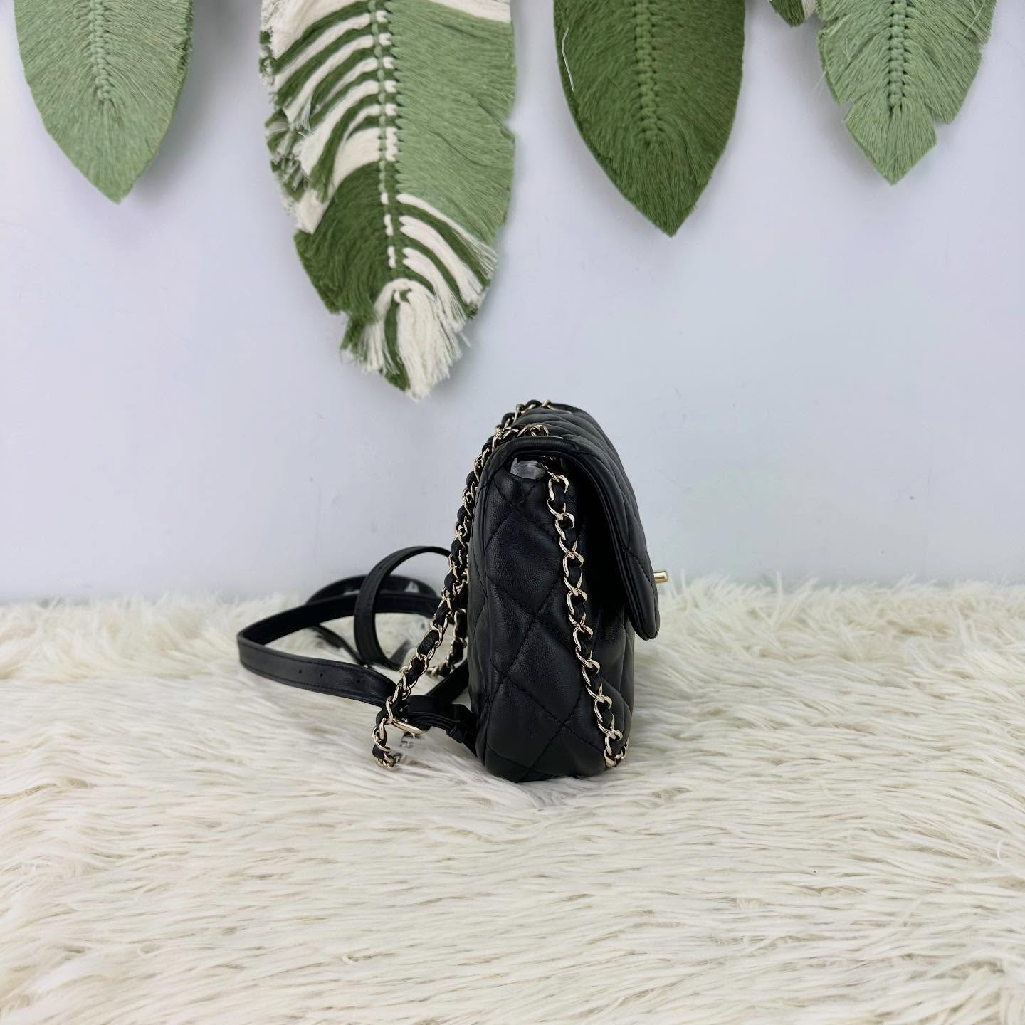 CHANEL 🤍PRE OWNED 24P 黑金羊皮琺瑯扣雙肩包 晶片款 2024年全套有單🖤