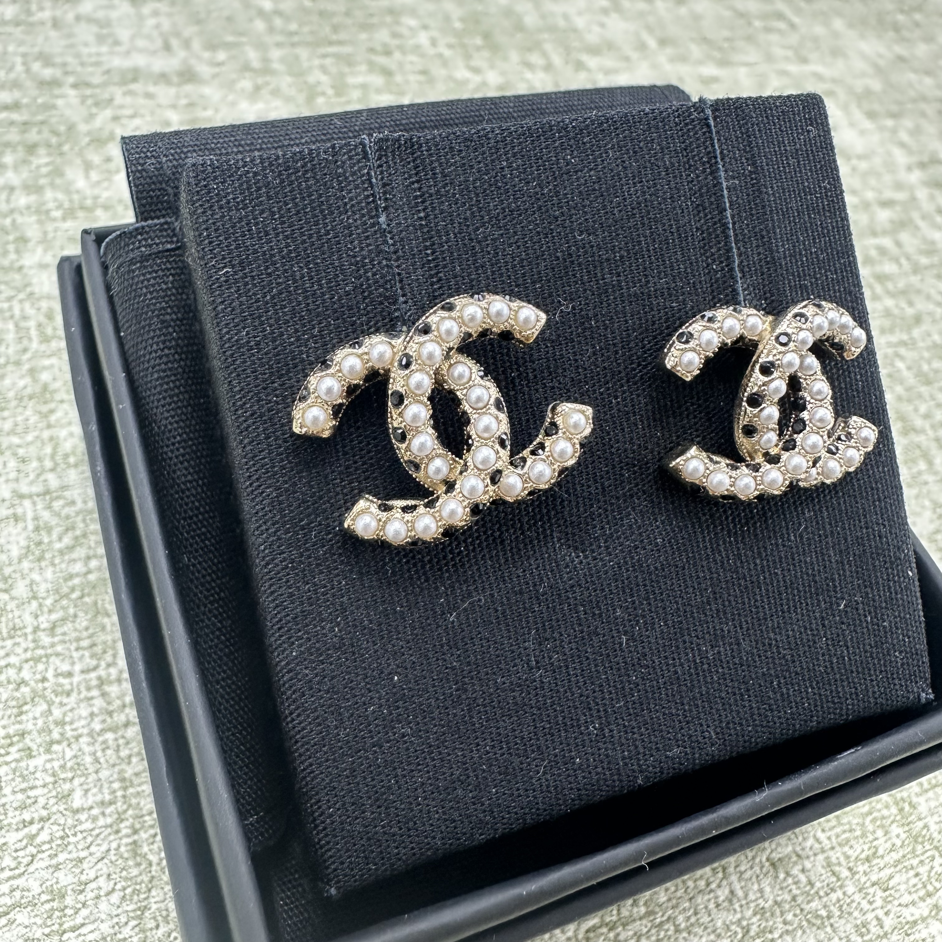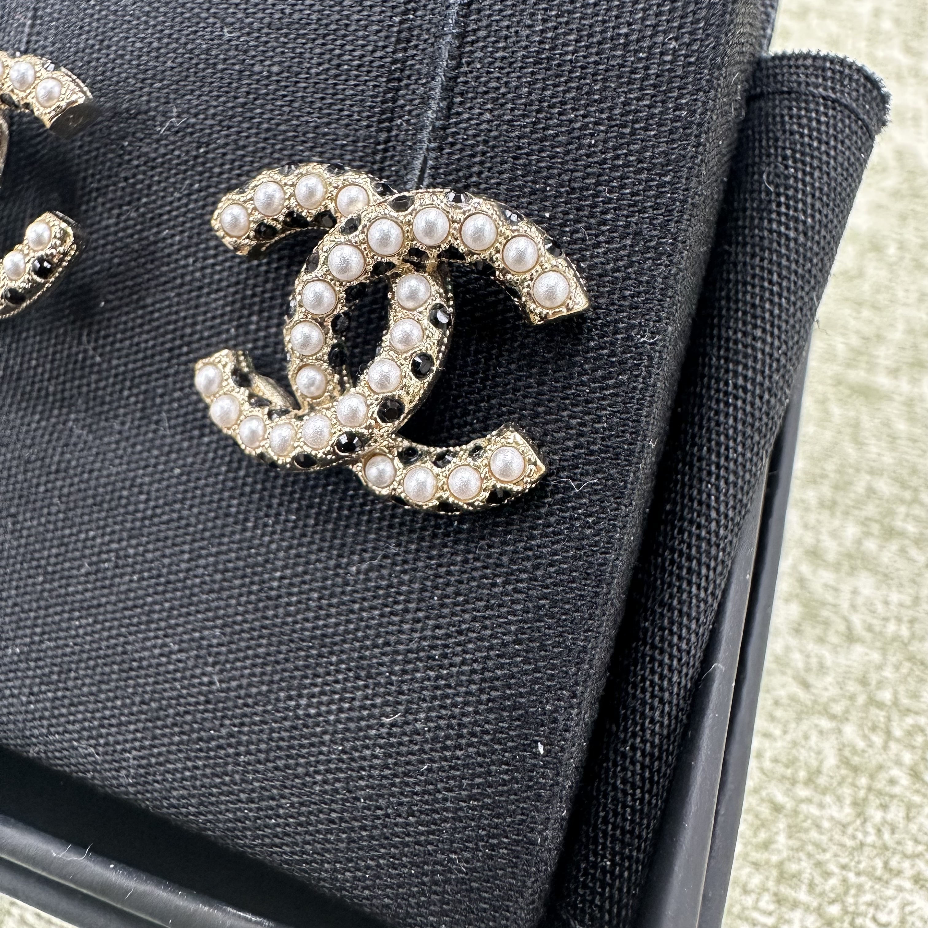 CHANEL 🤍PRE OWNED CC 珍珠黑水鑽耳環 Logo耳環✨