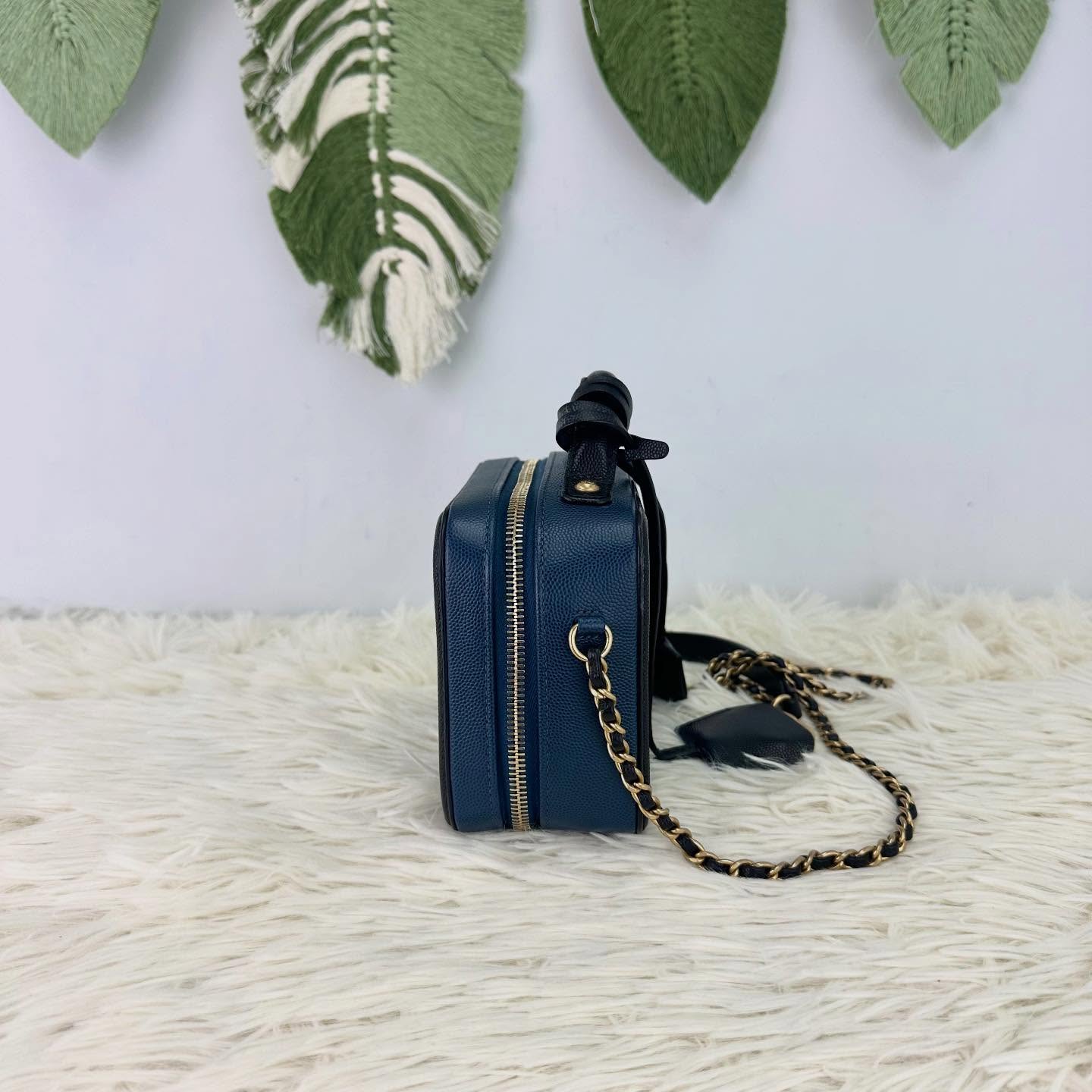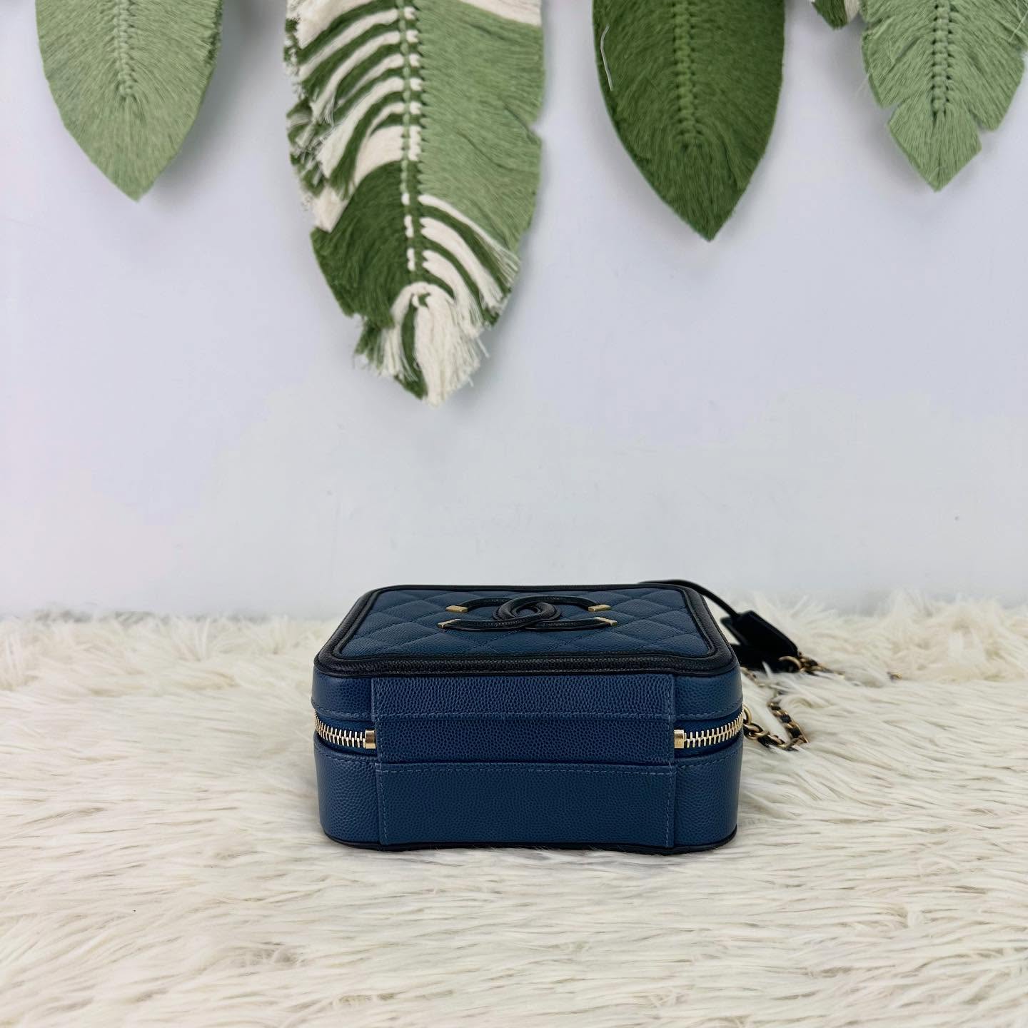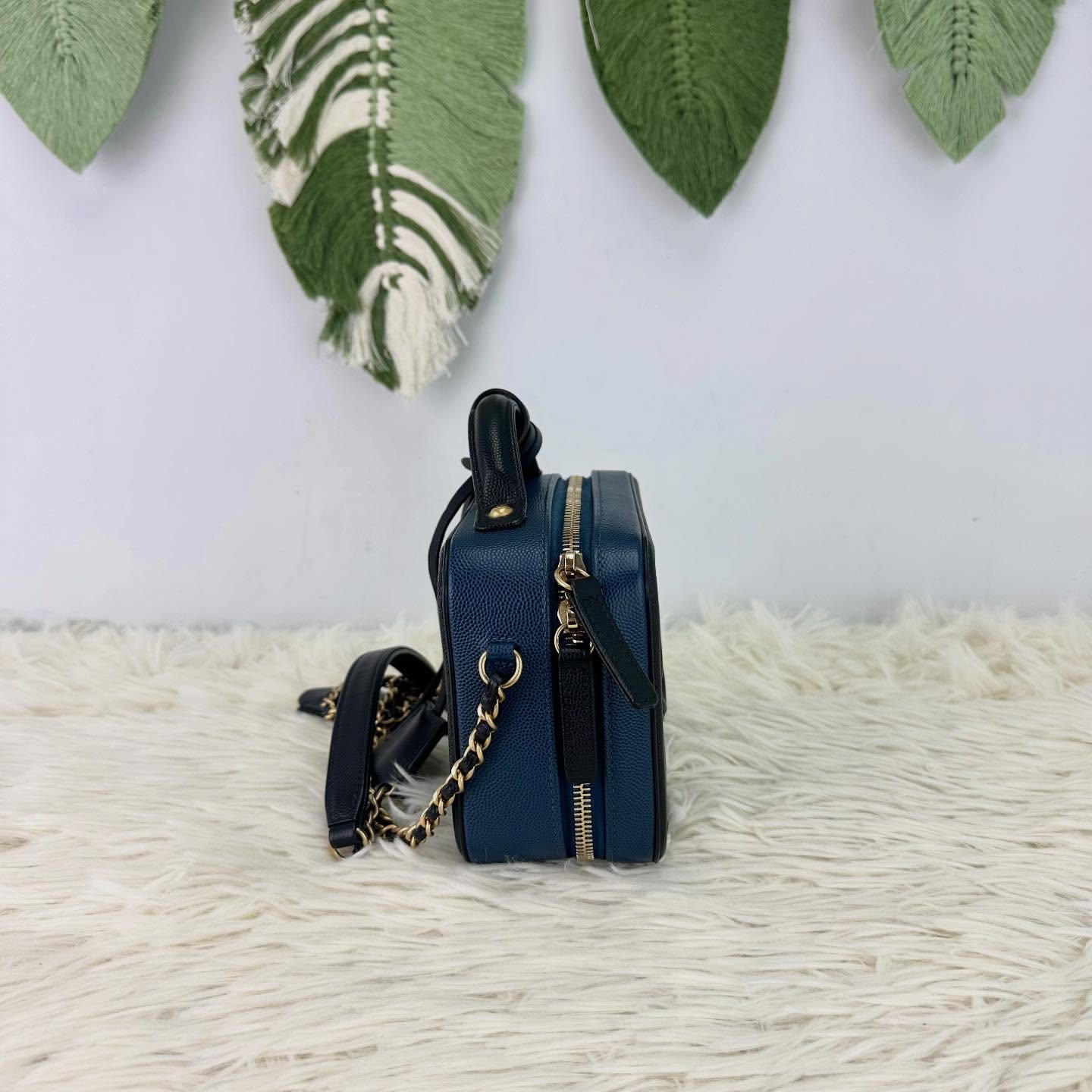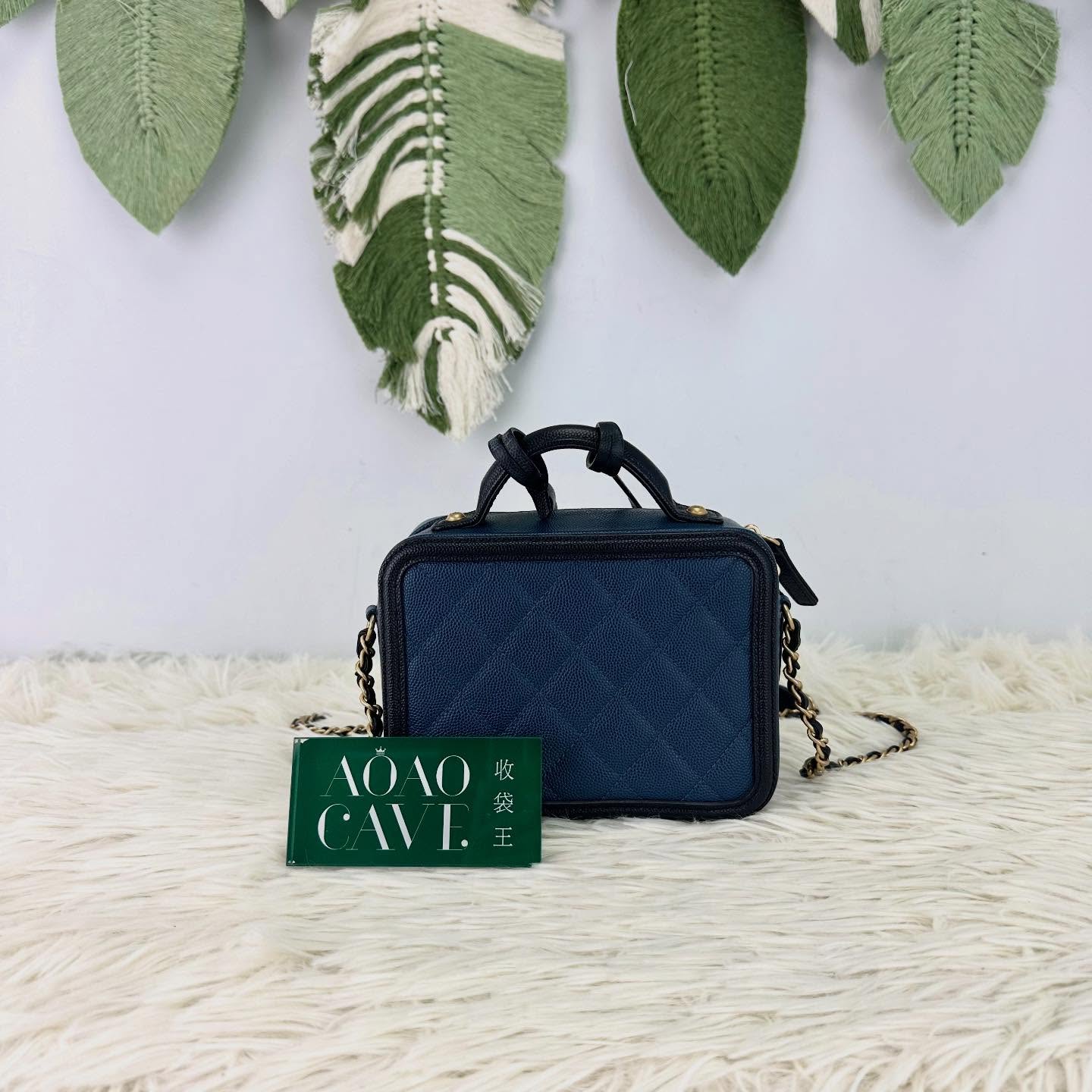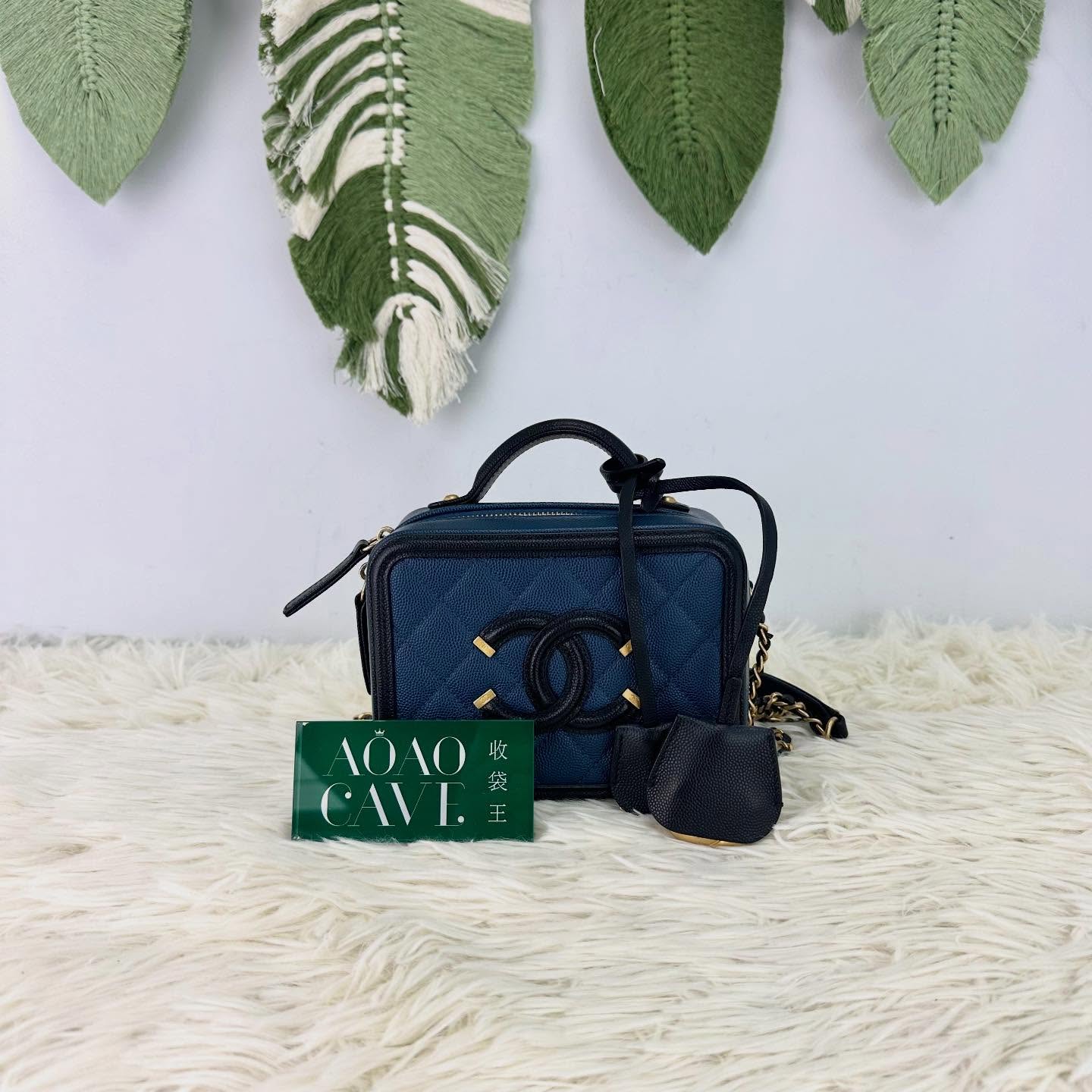 🤍PRE OWNED Filigree Vanity Case 荔枝皮藍色金扣 Small Size 💙