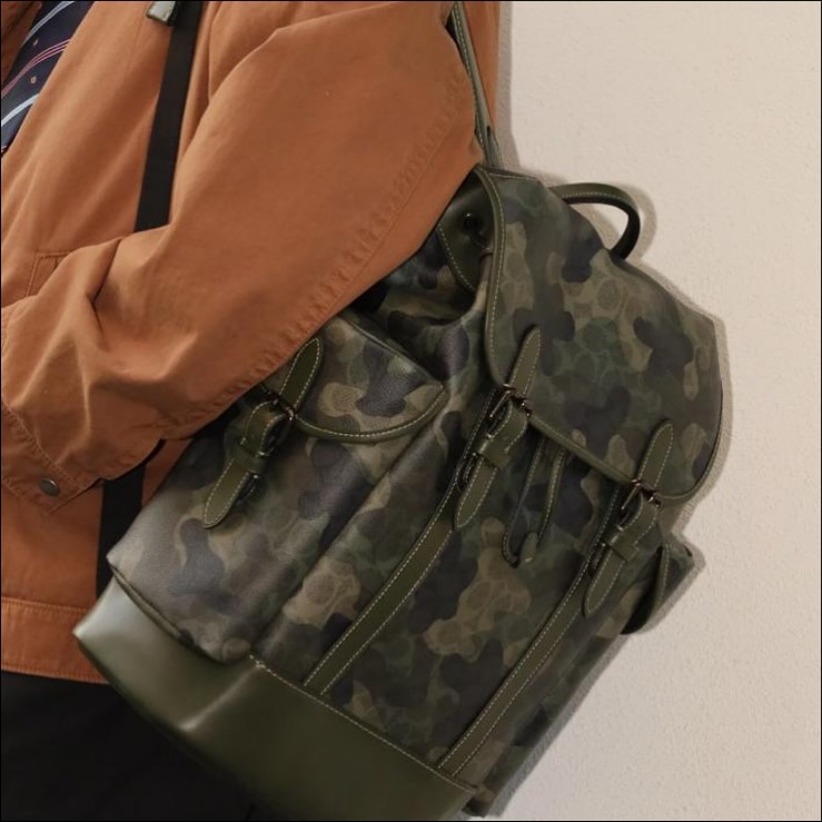 COACH 閑置品🌟SIGNATURE 綠色迷彩印花背包 💚