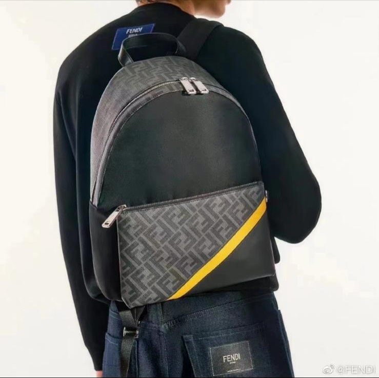 FENDI🤍PRE OWNED FF Diagonal Zucca 中性款背包🖤