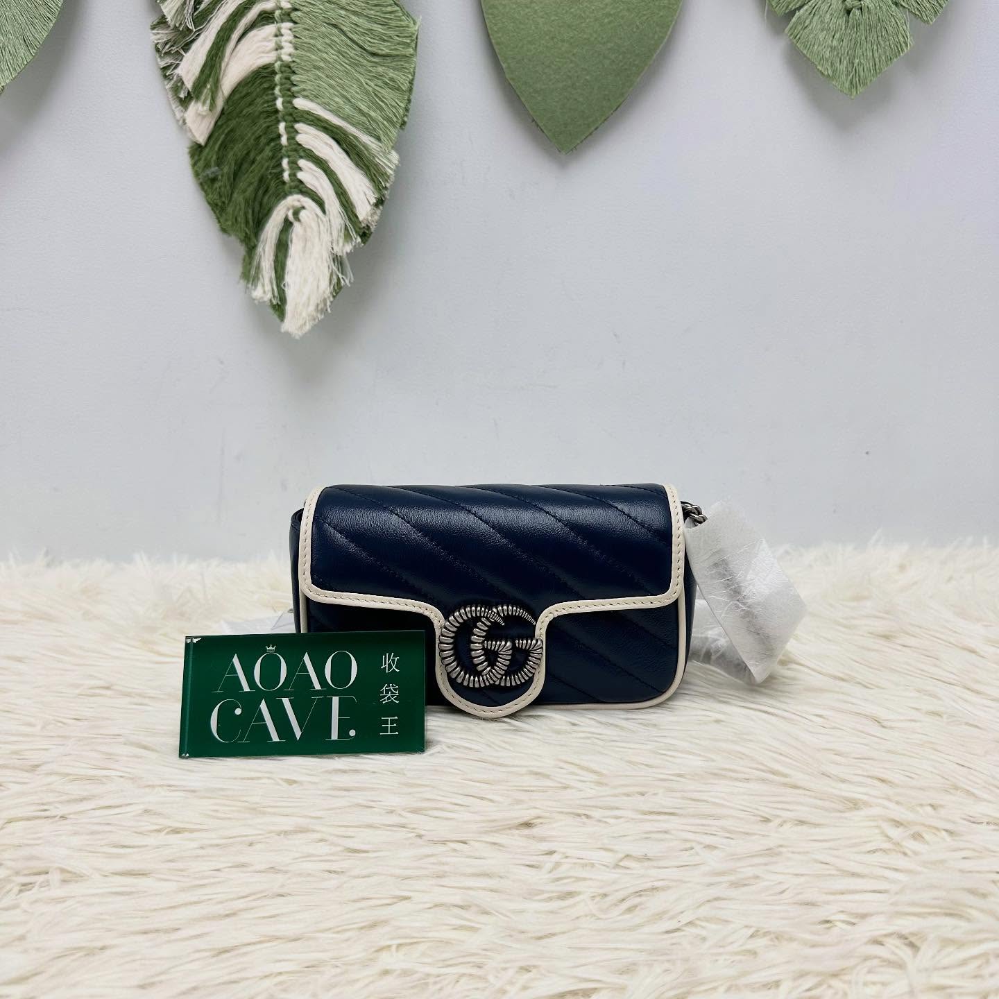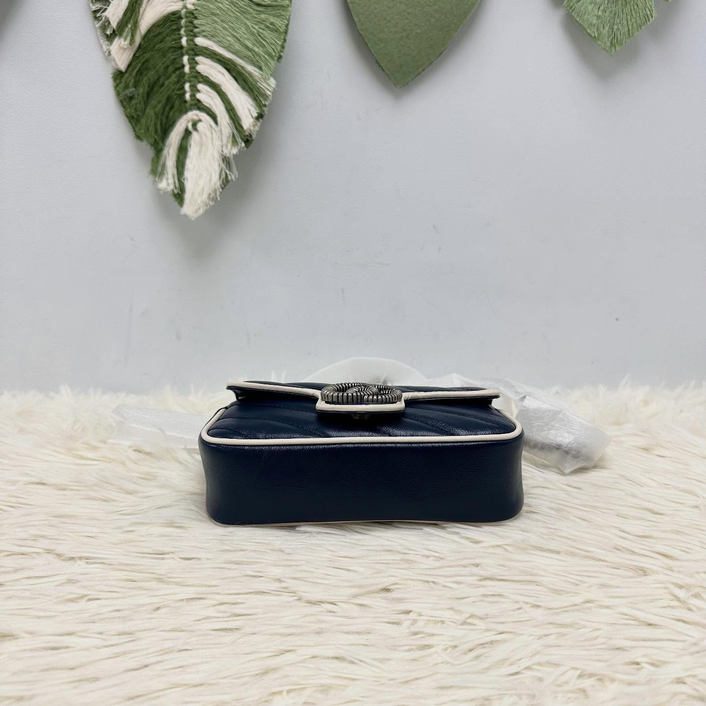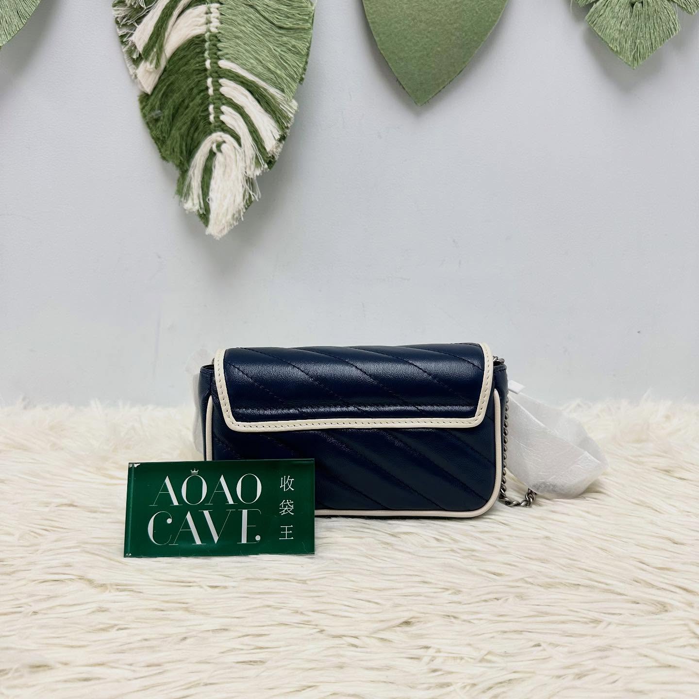 GUCCI ้็ฝฎๅ๐ซ Classic Blue Mini Marmont ่่ฒ้ๆฃๆ่ฉๅ ๐