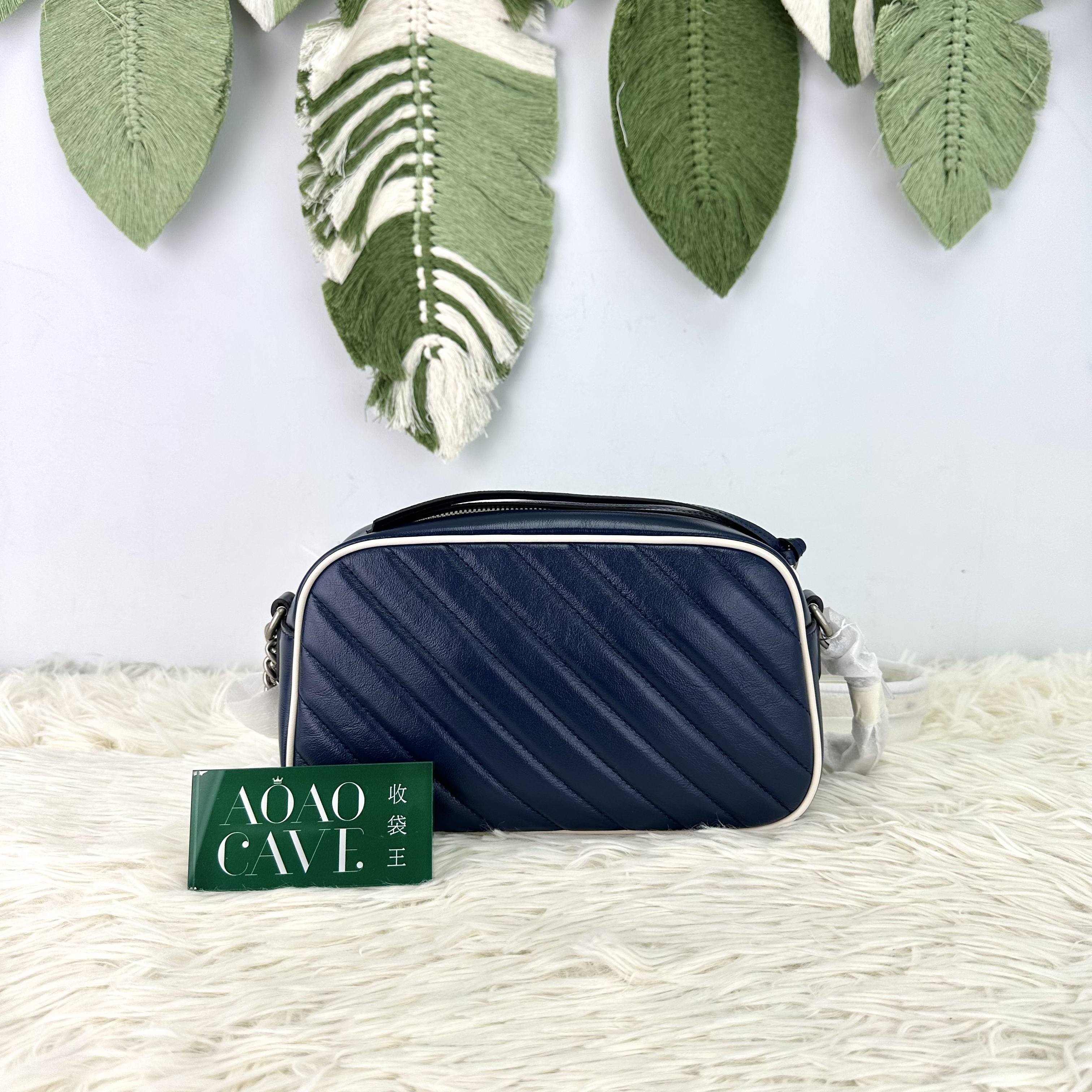 GUCCI 閑置品💫Classic Blue Marmont 銀扣相機包 24cm💙