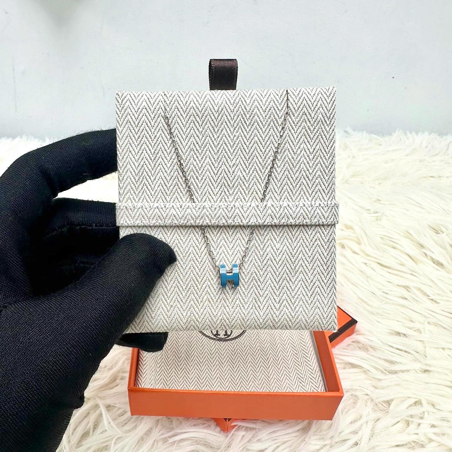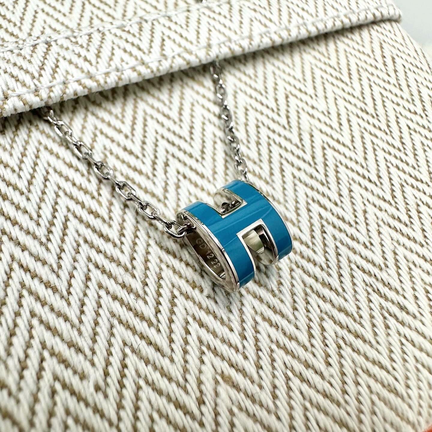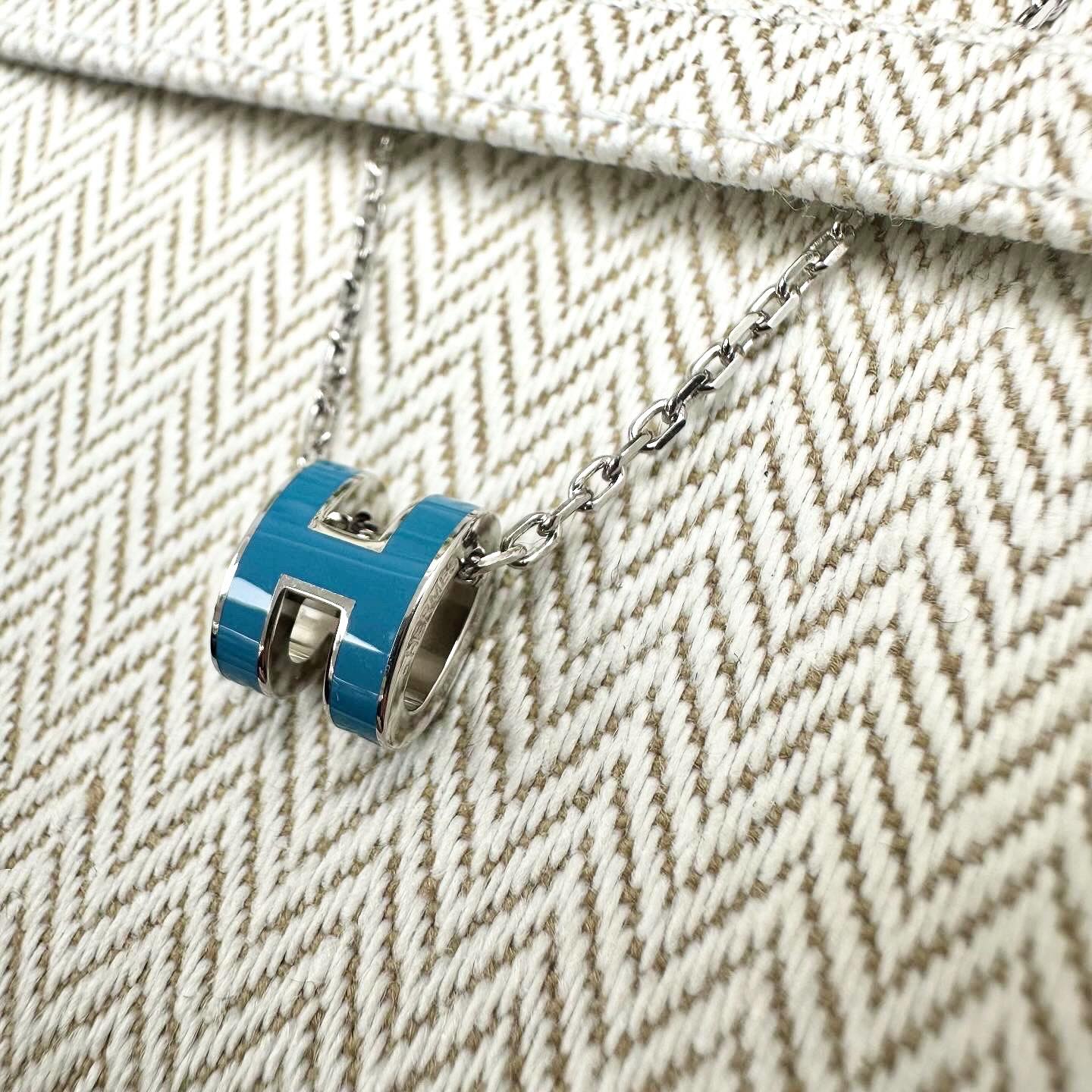 HERMES🤍PRE OWNED Mini Pop H 牛仔藍銀色頸鏈 全套有盒🧡