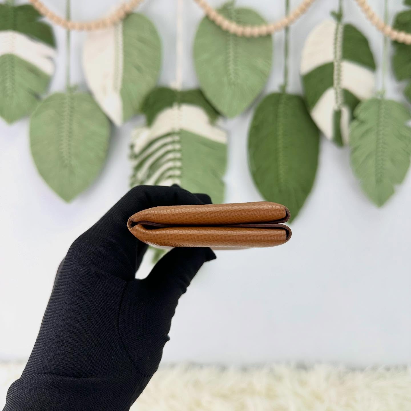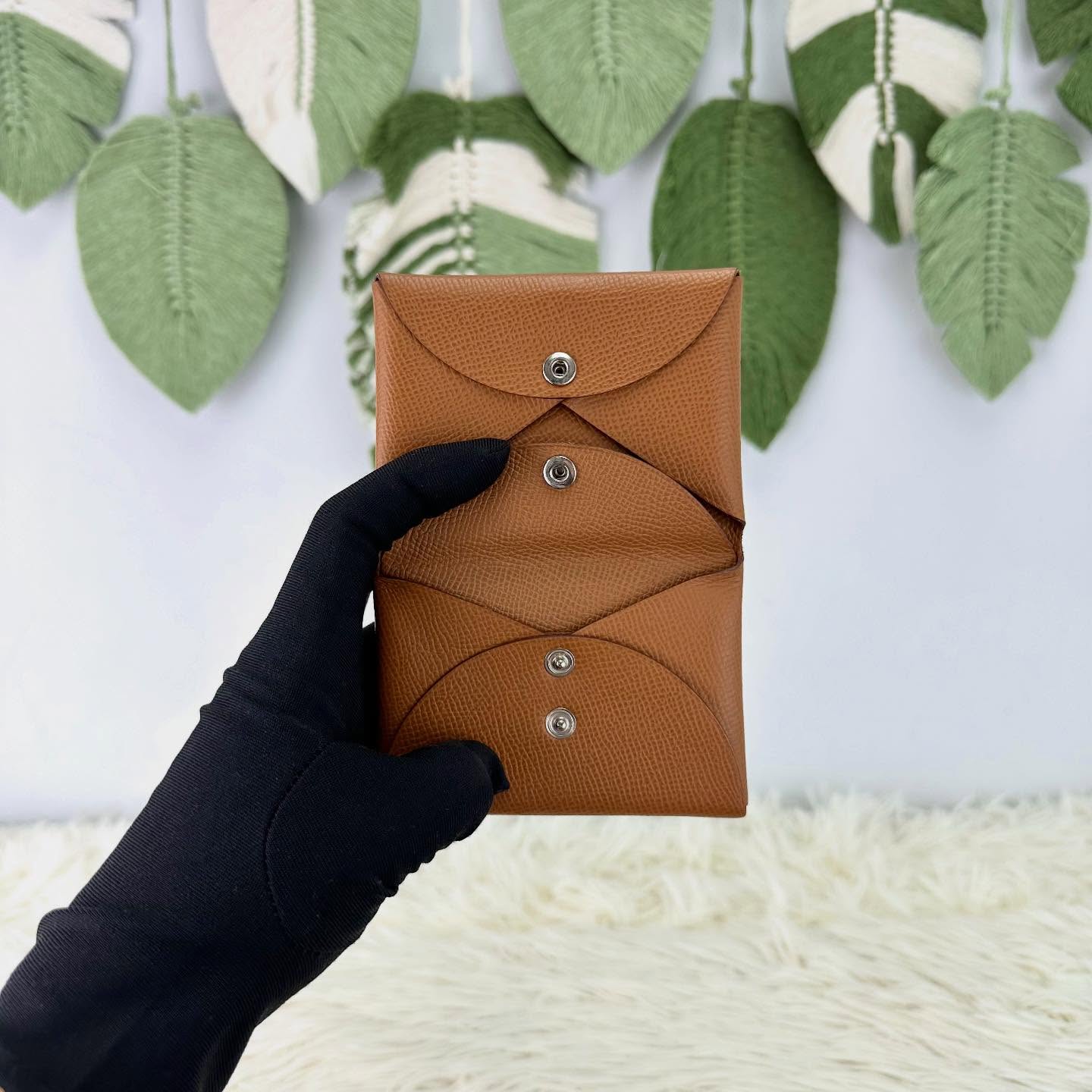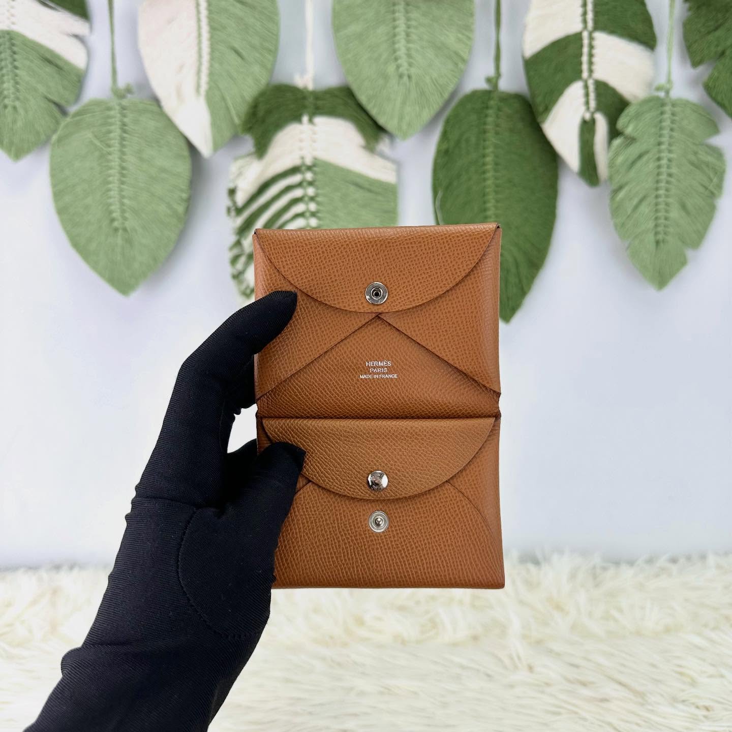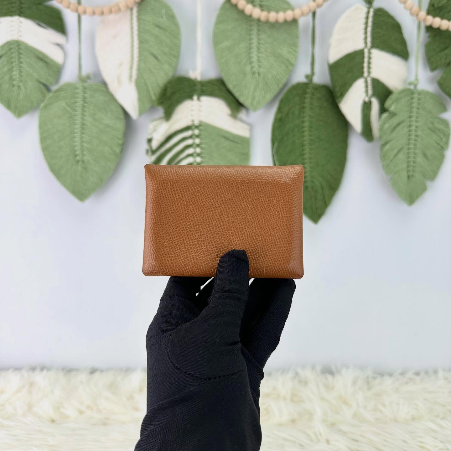 HERMES 🤍PRE OWNED Calvi Duo Compact Epsom皮金棕色卡片包 零錢包 U Stamp 🤎