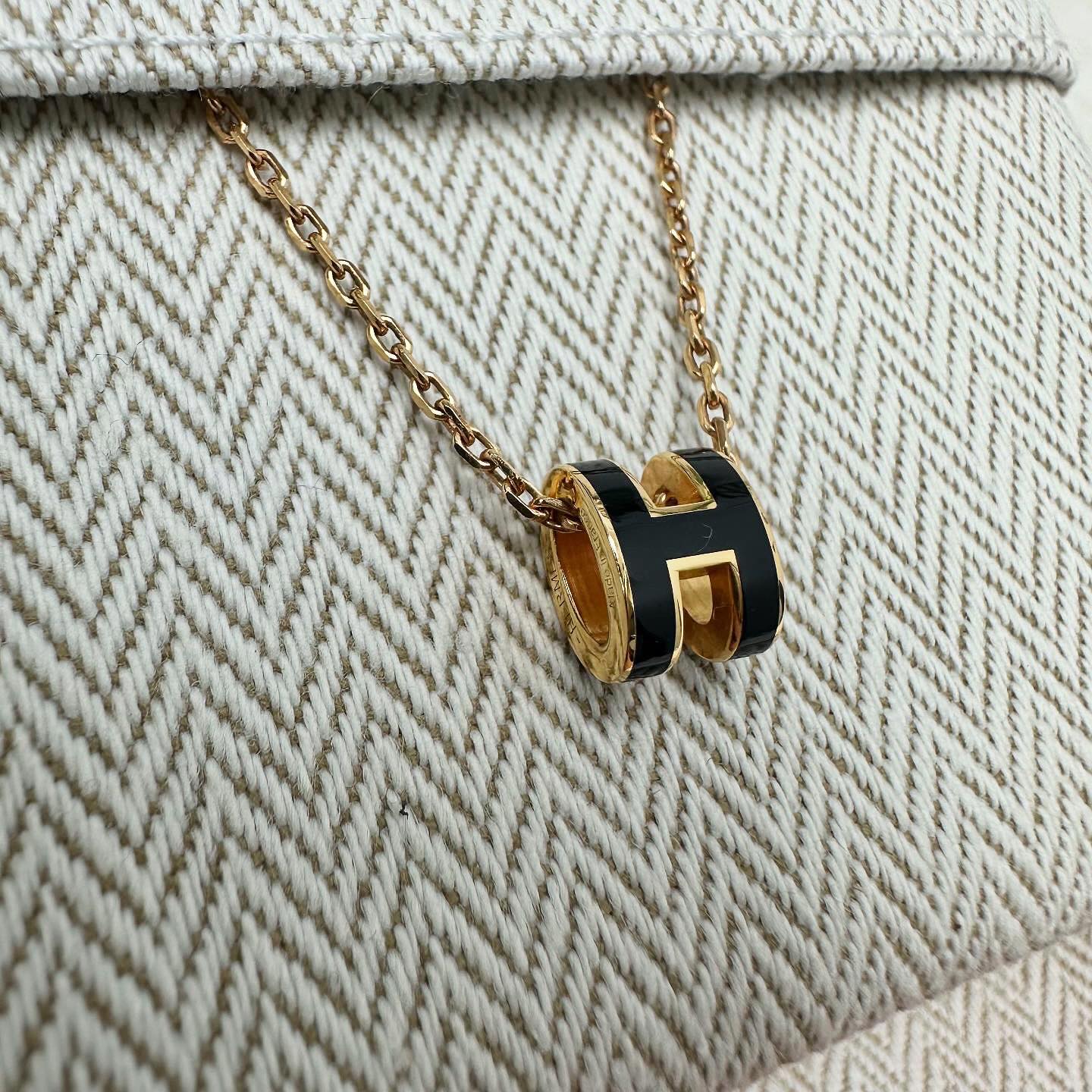 HERMES 🤍PRE OWNED Mini Pop H 黑金頸鏈 全套有盒🧡