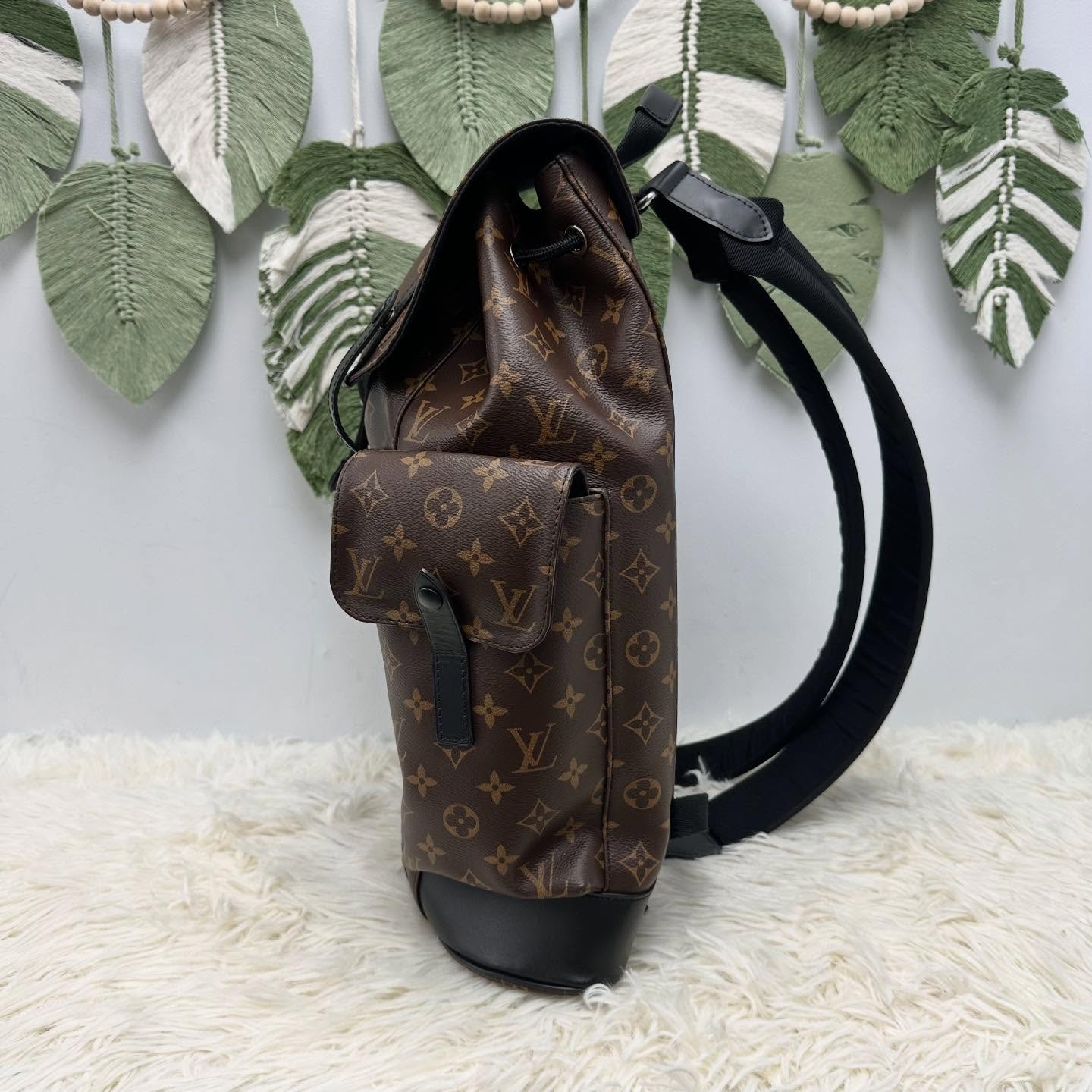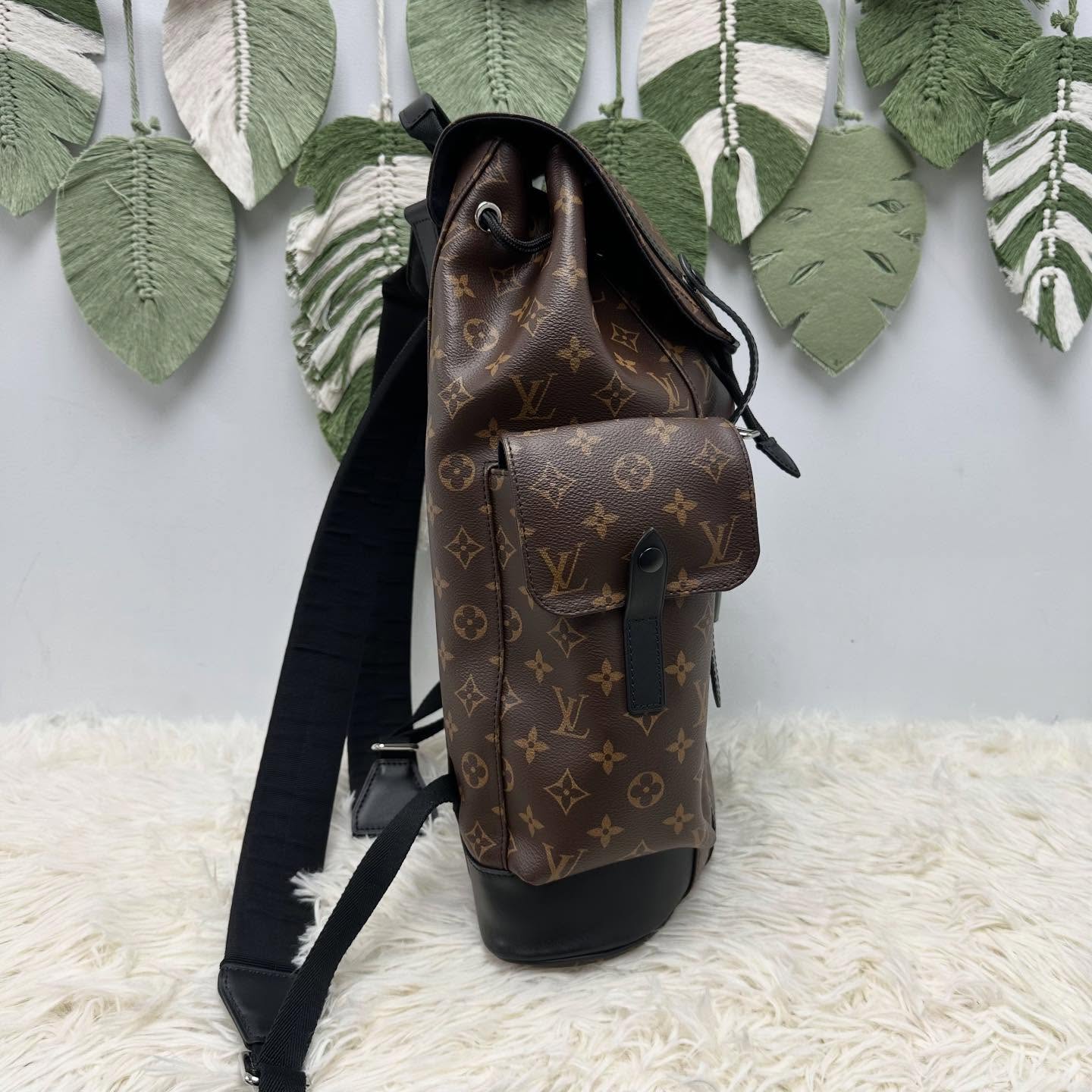LV🤍PRE OWNED Christopher PM Size 老花拼皮背包 晶片款 全套有單🤎
