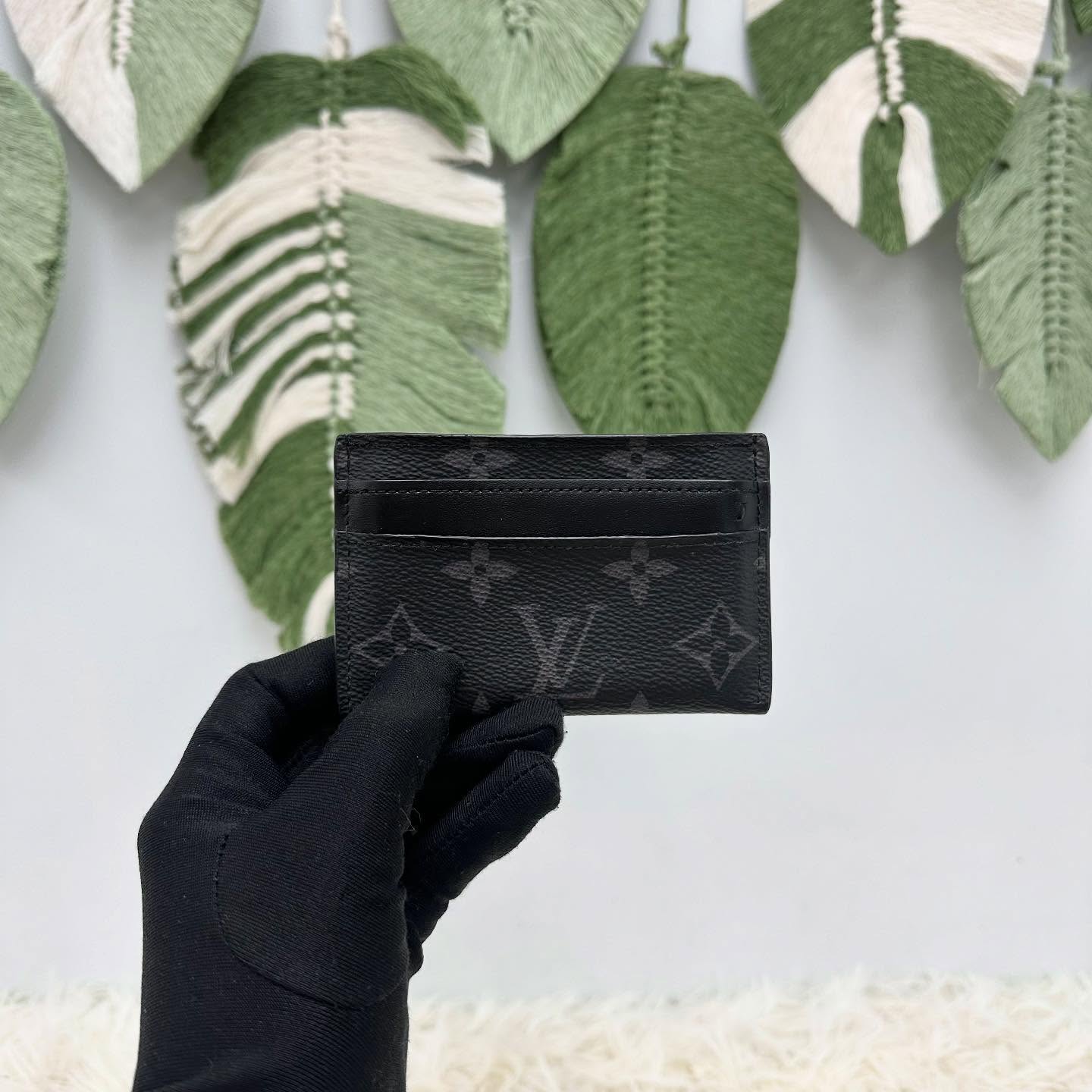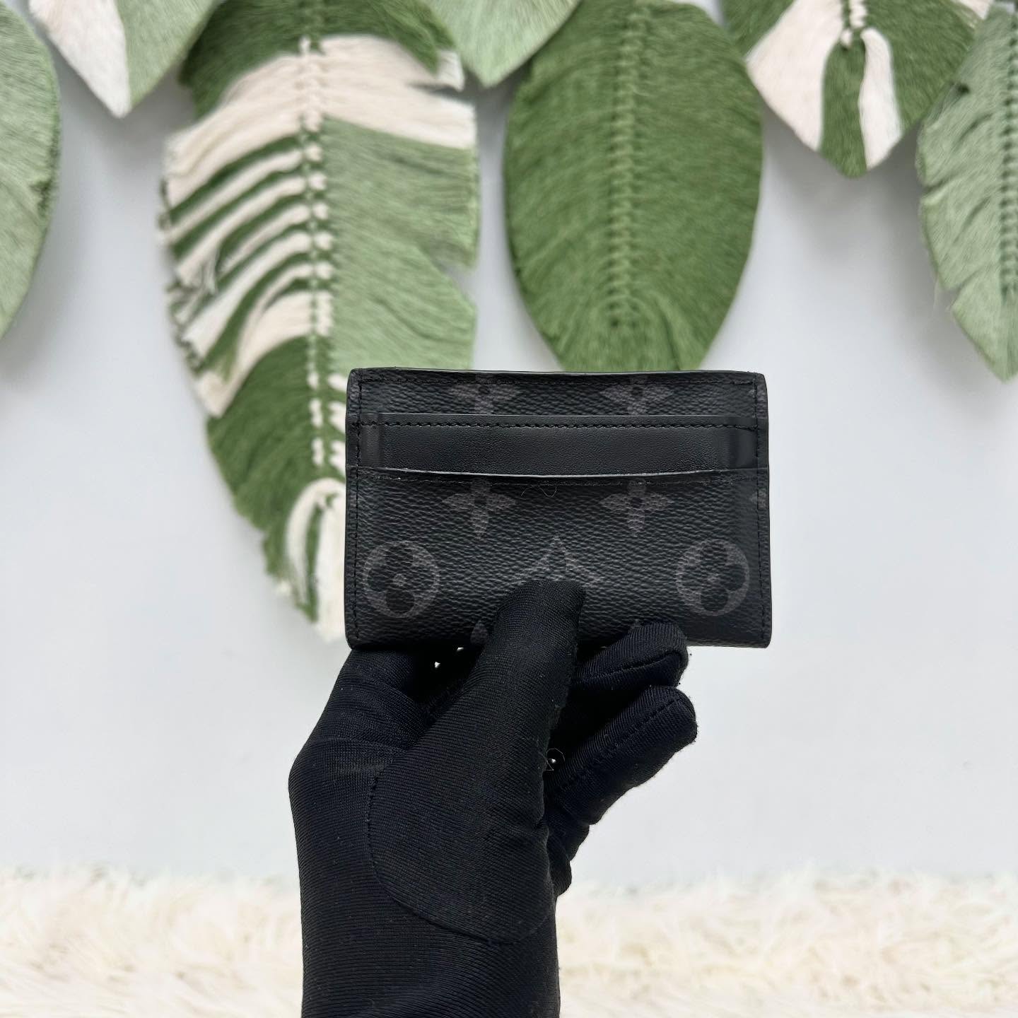 LV 🤍PRE OWNED 黑色老花拼皮 卡片包🖤
