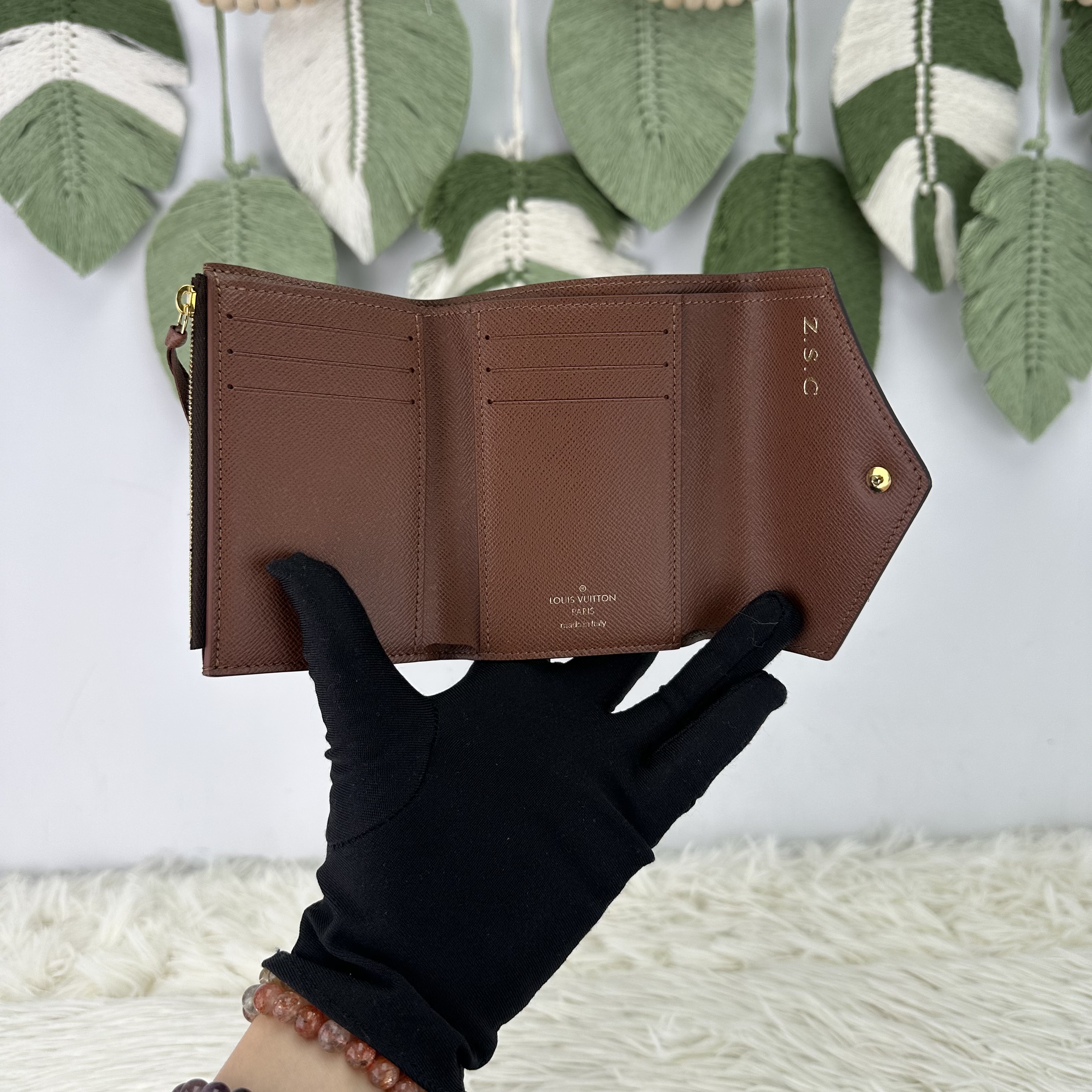 LV 🤍PRE OWNED LV 經典老花 金扣 三摺銀包 刻名款🤎