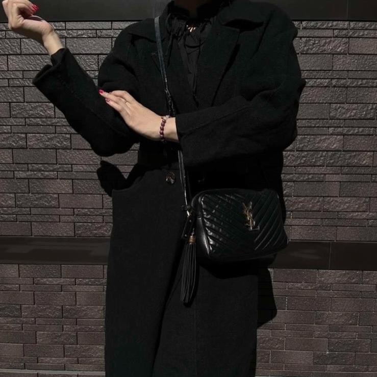 YSL 🤍PRE OWNED LOU 黑金羊皮流蘇相機包 斜肩包🖤